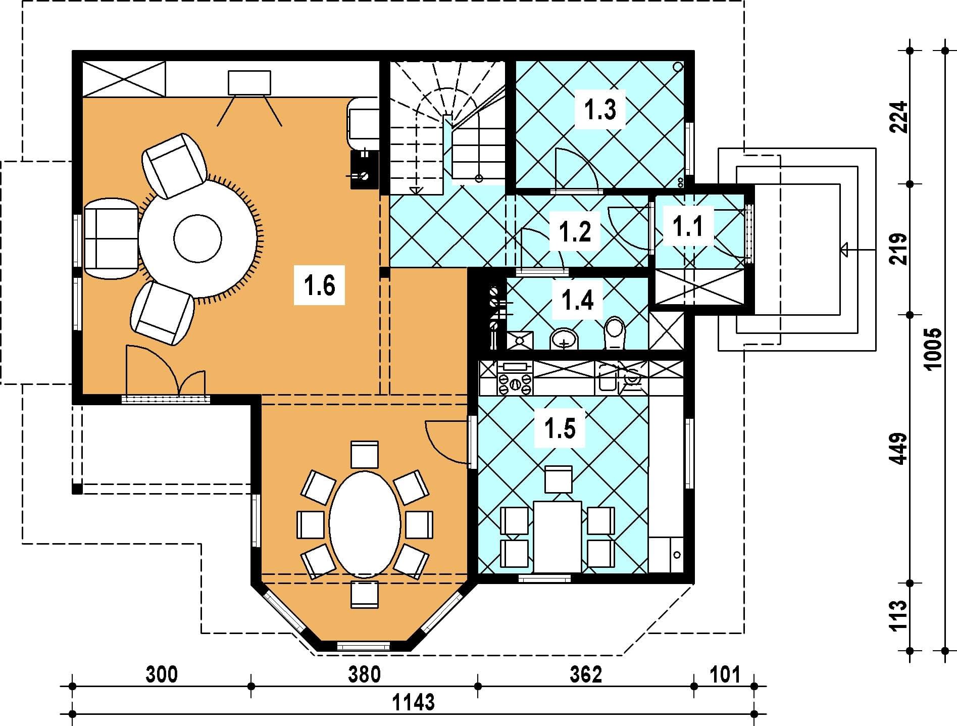 Budynek jednorodzinny, parterowy, z poddaszem mieszkalnym, niepodpiwniczony, 4 pokoje, kuchnia, jadalniaRzuty