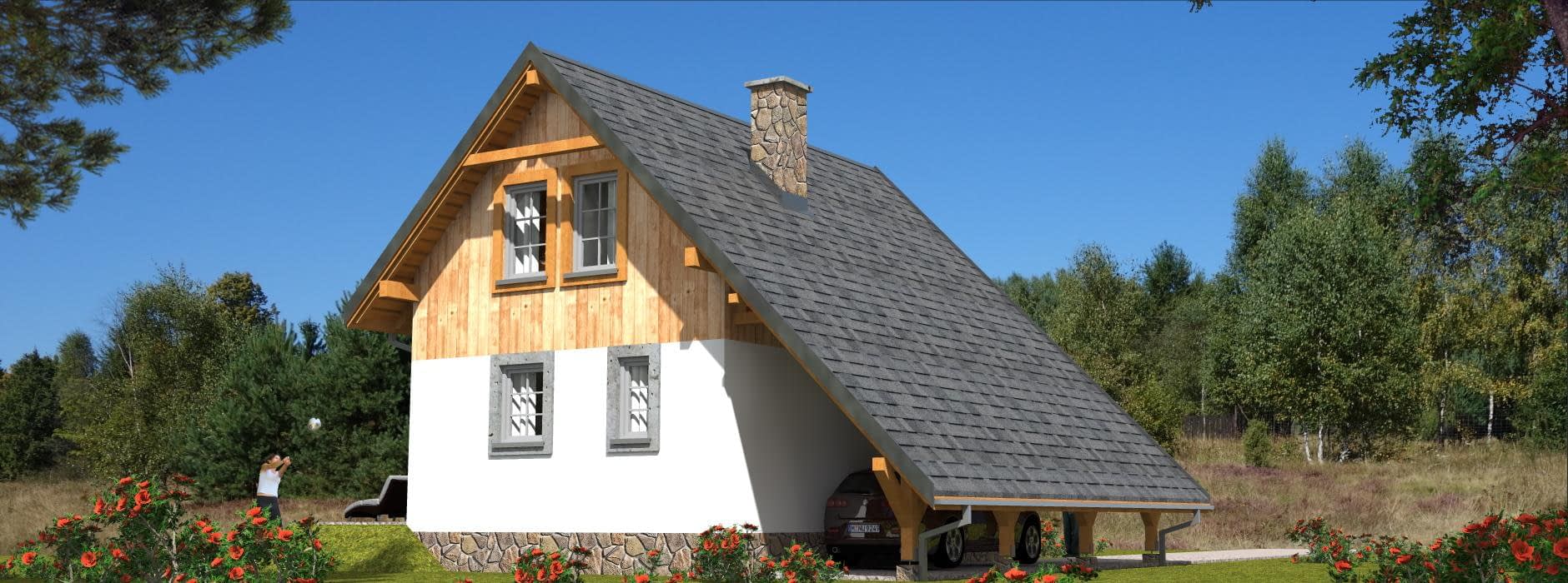 Budynek jednorodzinny, parterowy, z poddaszem mieszkalnym, niepodpiwniczony, 4 pokoje, kuchnia,wiataRzuty