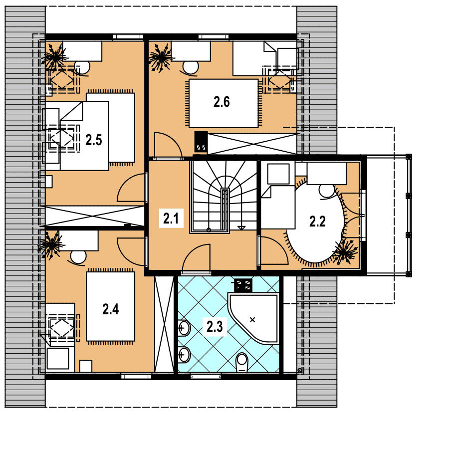 Budynek jednorodzinny, parterowy, z poddaszem mieszkalnym, niepodpiwniczony, 6 pokoi, kuchniaRzuty