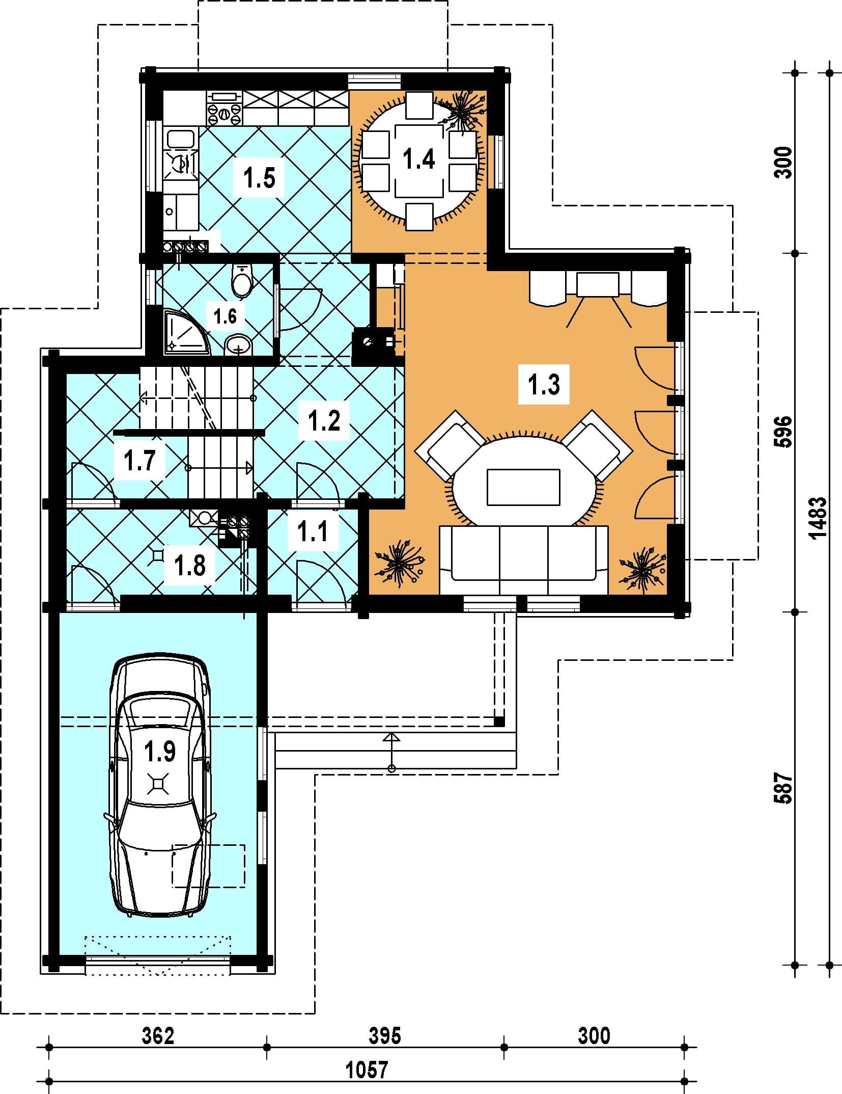 - wiatrołap 2.20 hall 8.10 pokój dzienny 25.30 jadalnia 6.40 kuchnia 8.40 łazienka 2.90 klatka schodowa 6.70 kotłownia 4.20 garaż 0.000