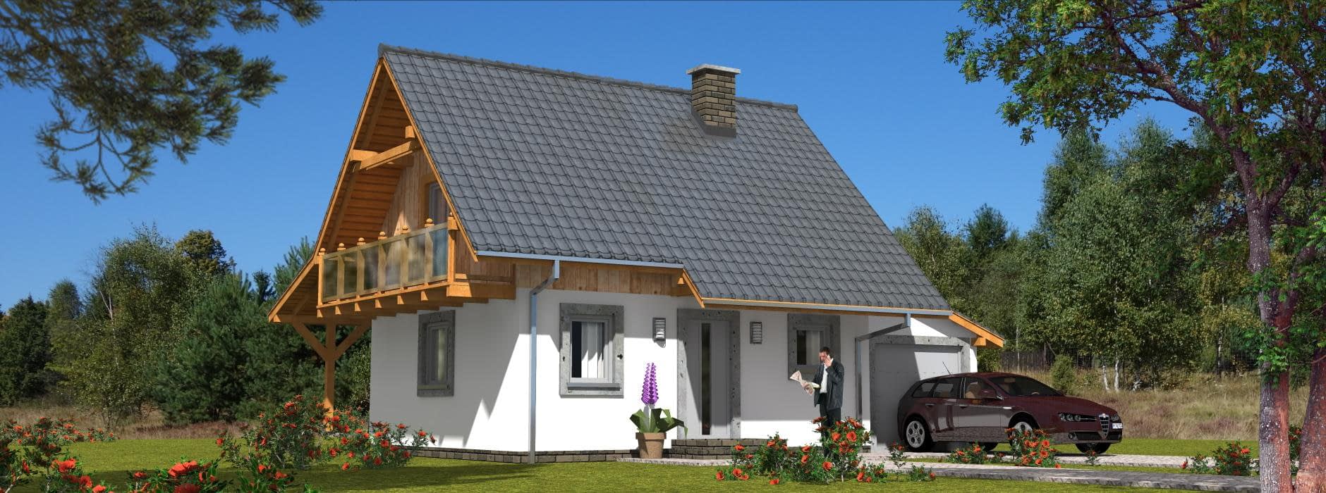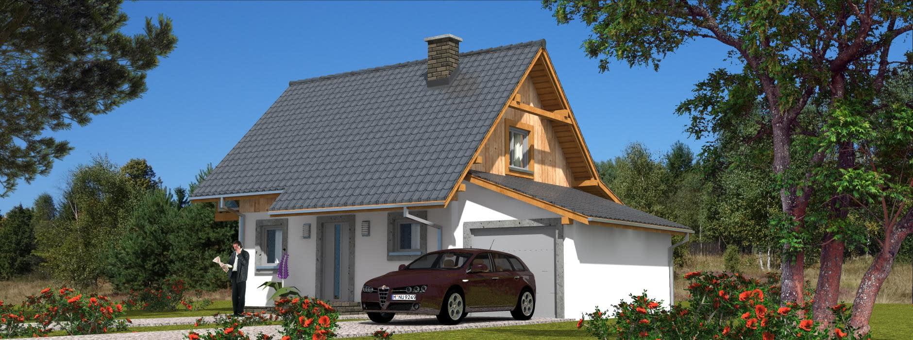 Budynek jednorodzinny, parterowy, z poddaszem mieszkalnym, niepodpiwniczony, 4 pokoje, kuchnia, garażRzuty