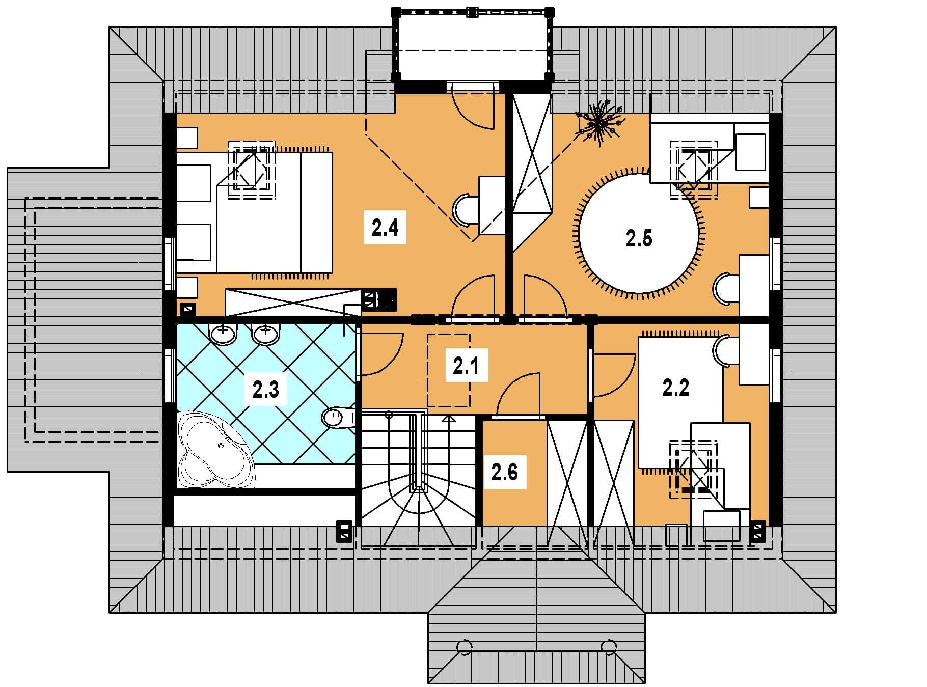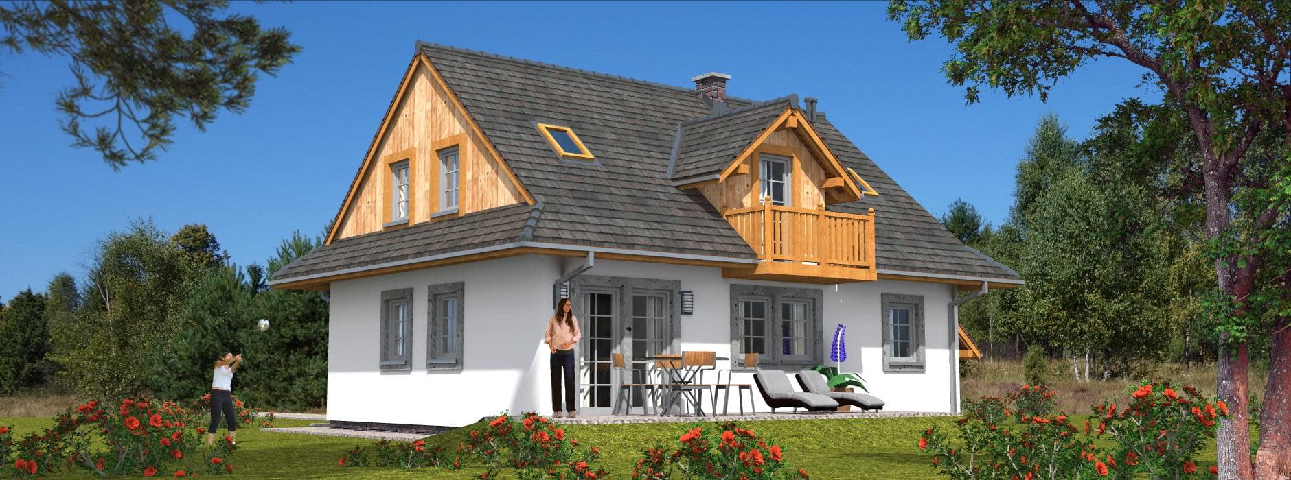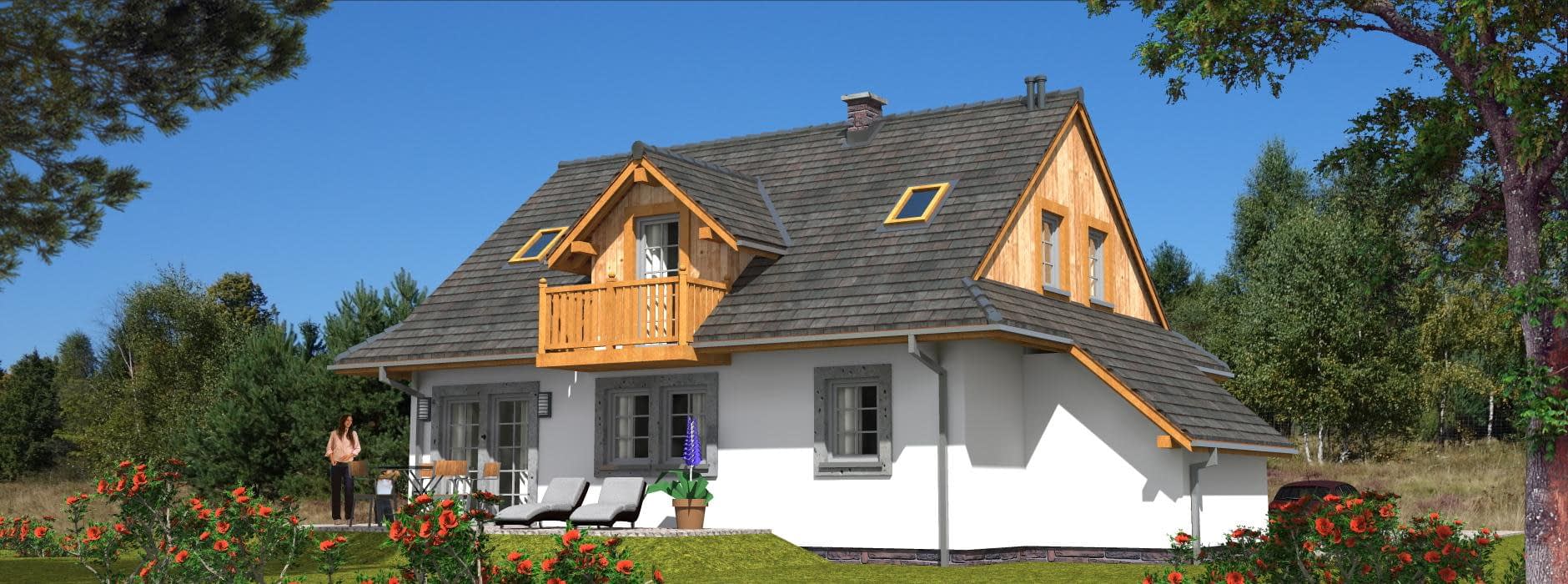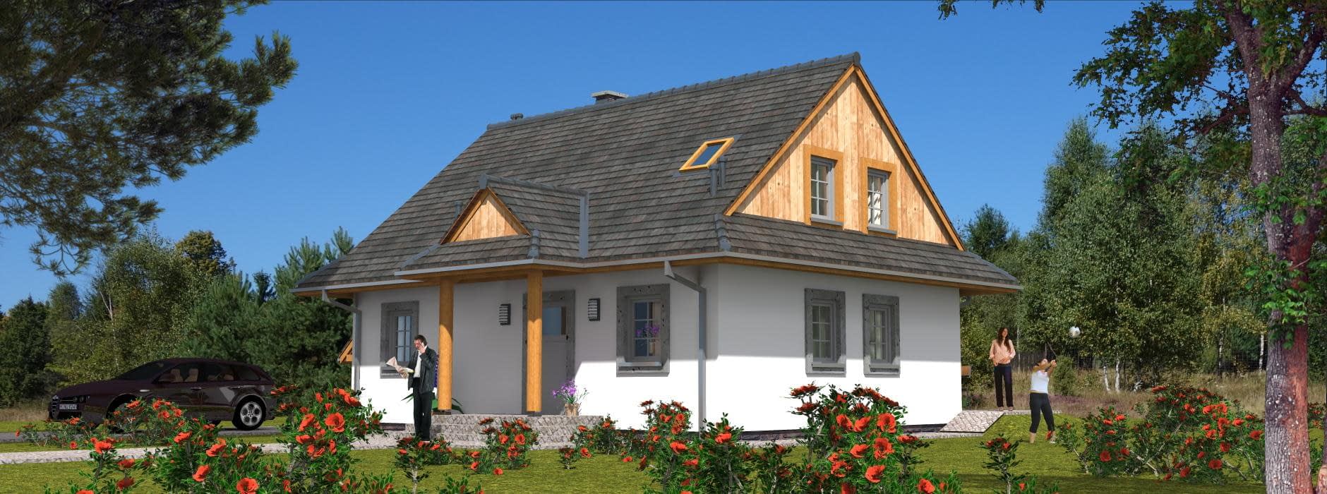 Budynek jednorodzinny, parterowy, z poddaszem mieszkalnym, niepodpiwniczony, 5 pokoi, kuchniaRzuty