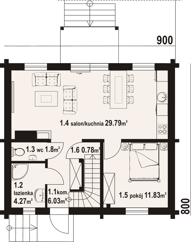 opisu architektonicznego zawierającego m.in. opis przyjętych rozwiązań, zestawienia powierzchni (użytkowej, zabudowy, netto), kubatury oraz powierzchni poszczególnych pomieszczeń.