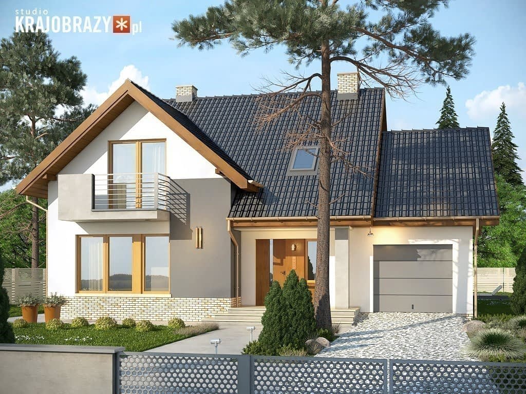LAGUNA 2 to projekt nowoczesnego domu jednorodzinnego z poddaszem użytkowym, z garażem dostawionym do bryły budynku. Uwagę przyciąga elewacja frontowa z reprezentacyjnym szczytem oraz asymetryczny balkon. Ciekawy efekt wizualny daje zastosowanie tynku w różnych odcieniach szarości. Od ogrodu projekt urozmaicony jest dużymi tarasami, które częściowo osłania pergola, dając przyjemną przestrzeń do wypoczynku lub spożywania posiłków w cieplejsze dni.We wnętrzu uwagę przyciąga przestronny, dobrze oświetlony salon oraz kuchnia z barem – z obydwu tych pomieszczeń wyjść można na zewnątrz, do ogrodu. Ponadto, w poziomie parteru przewidziano dwa dodatkowe pokoje oraz łazienkę. Garaż dostępny jest z wnętrza domu poprzez pomieszczenie gospodarcze. Na piętrze znalazły się trzy sypialnie, w tym jedna z wyjściem na balkon oraz z wyodrębnioną garderobą. Zaprojektowano również przestronną łazienkę, z której przejść można do zlokalizowanego ponad garażem strychu. Przestrzeń tę można zaadaptować np. na schowek lub pralnię.Rzuty