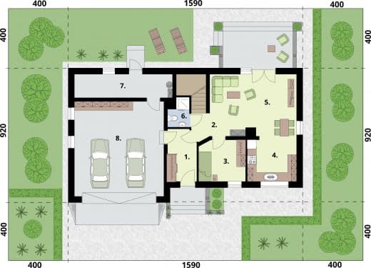 - Minimalne wymiary działki23.9 x 18.2m