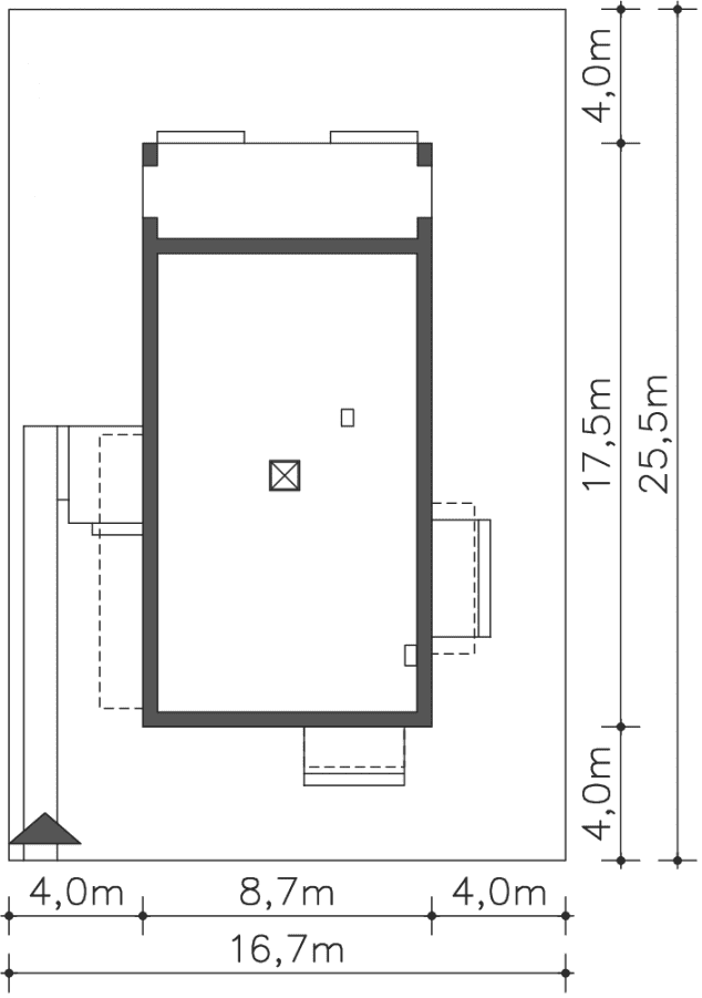 - Minimalne wymiary działki25.5 x 16.7m