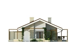 Jednorodzinny budynek mieszkalny parterowy, przeznaczony dla 4-osobowej rodziny. Na parterze przewidziano część dzienną i nocną, w piwnicy część gospodarczą, w tym kotłownię na paliwo stałe. Atutem projektu jest przestronna część dzienna otwarta na otoczenie poprzez szereg przeszkleń, dodatkowo wzbogacona oranżerią.Konstrukcja