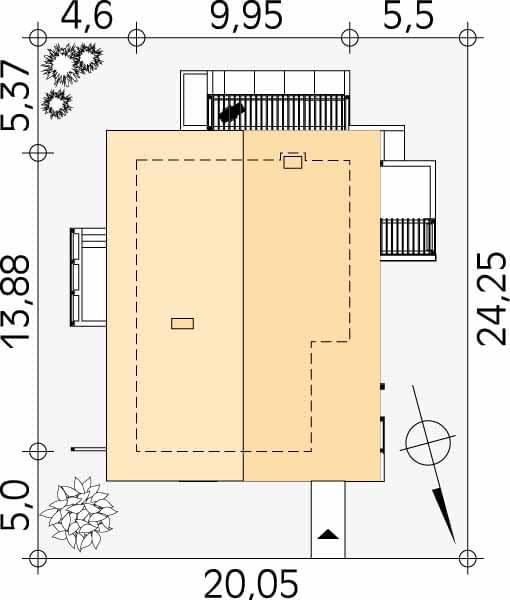 - Minimalne wymiary działki24.25 x 20.05m