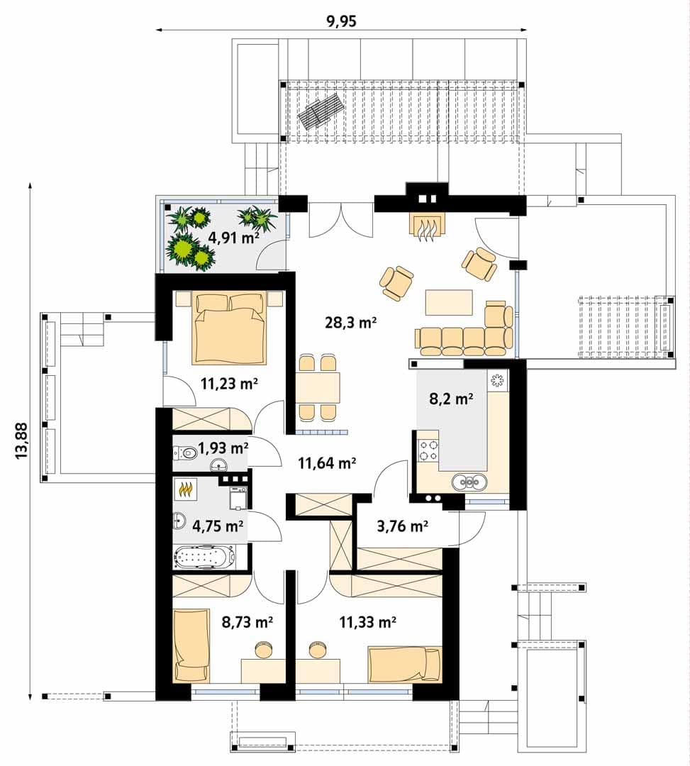 - Szerokość domu9.95 m