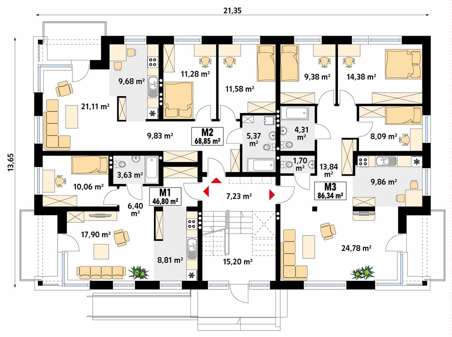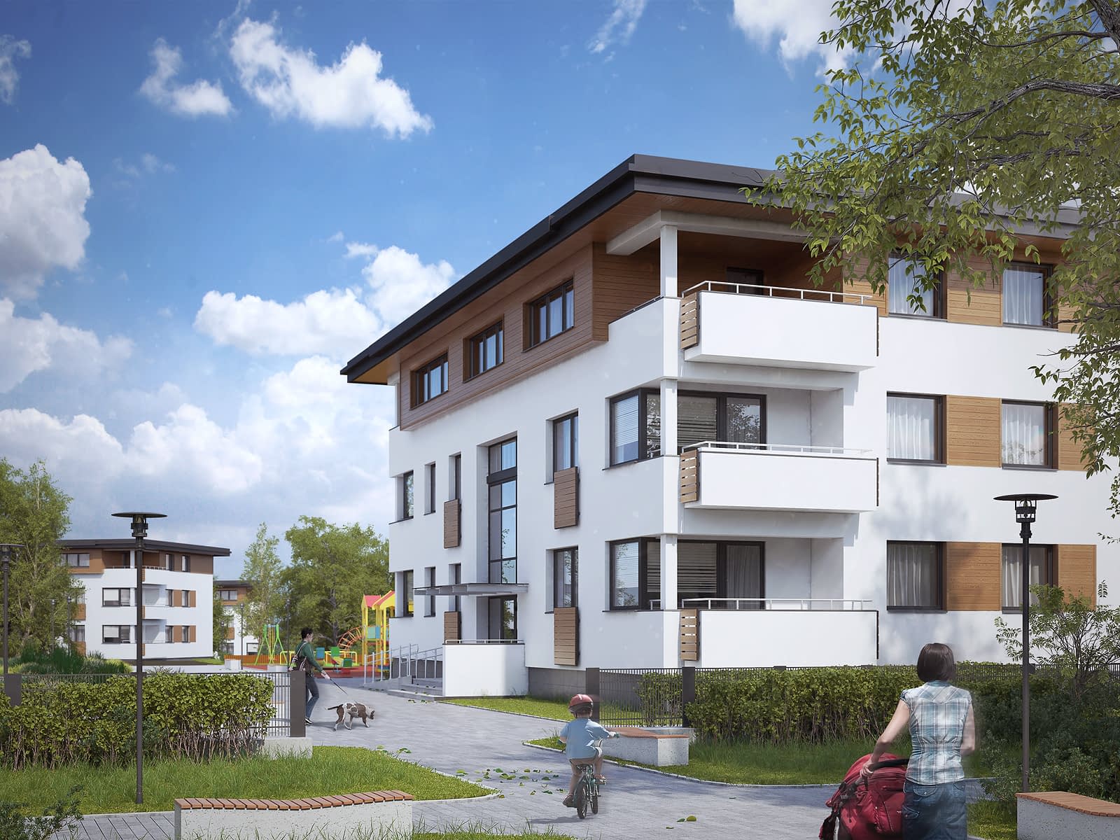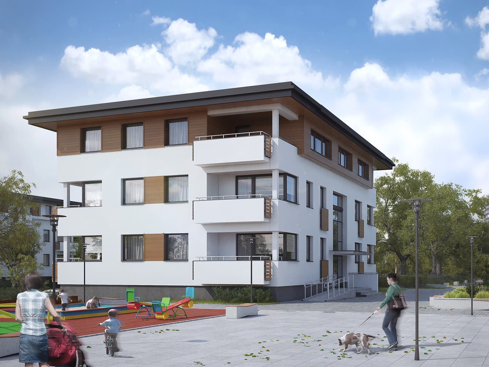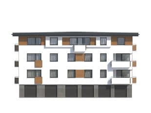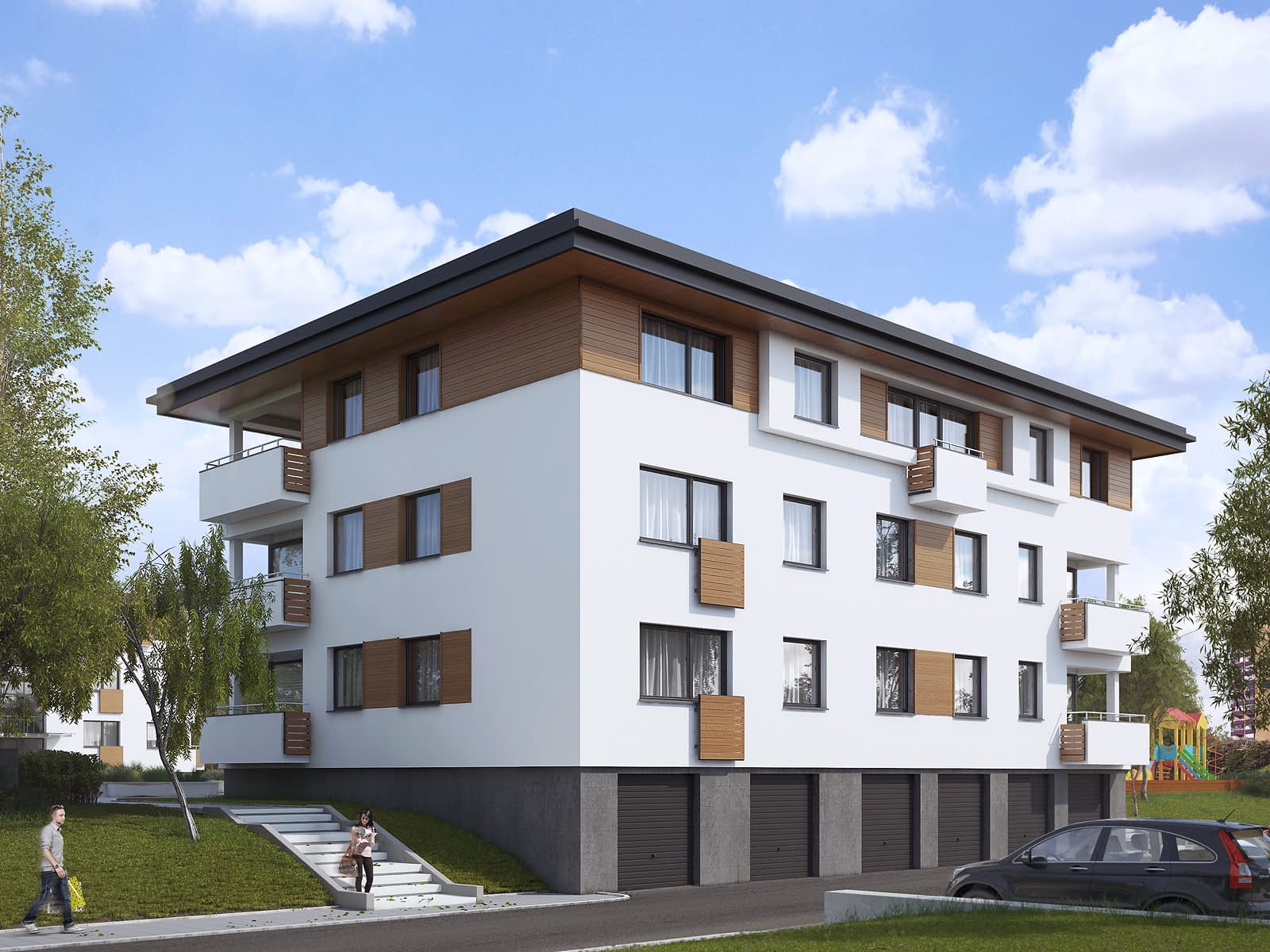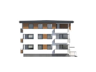 Dom mieszkalny wielorodzinny (9-mieszkaniowy), podpiwniczony. W piwnicy zaprojektowano 6 stanowisk garażowych, komórki lokatorskie, pomieszczenie techniczne. Na trzech kondygnacjach mieszkaniowych zaprojektowano 9 mieszkań. Dom o nowoczesnej, zwartej bryle.Konstrukcja