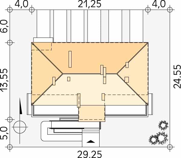 - Minimalne wymiary działki24.55 x 29.25m