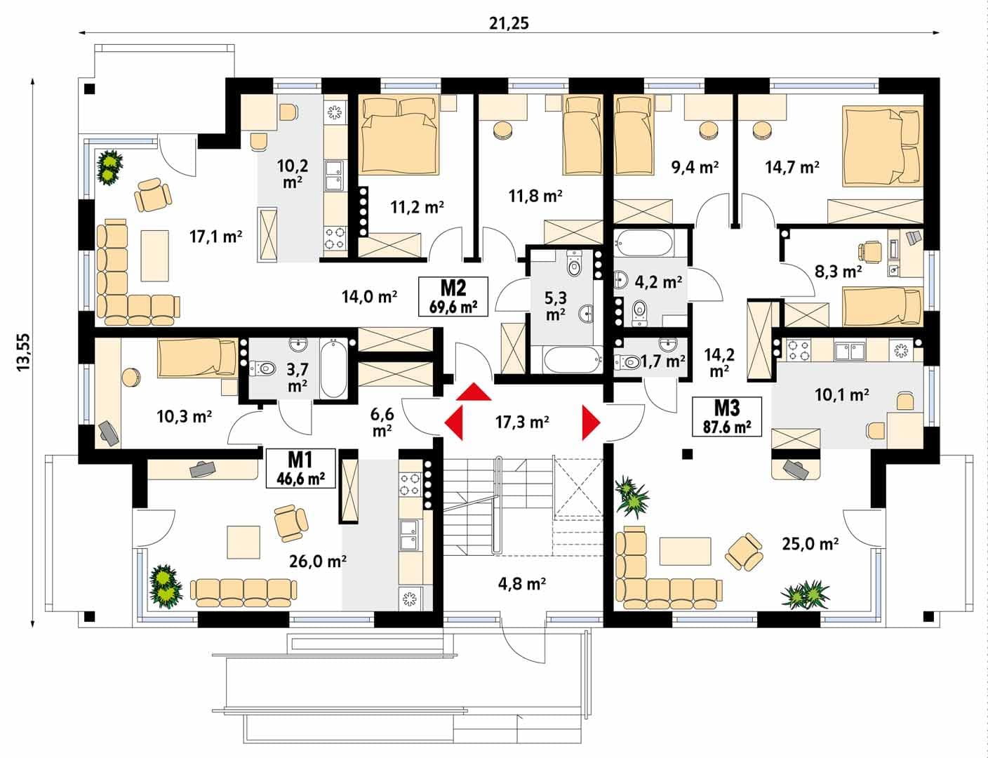 - Szerokość domu21.25 m