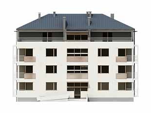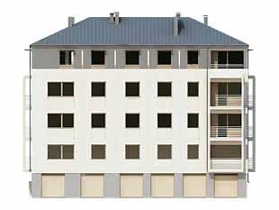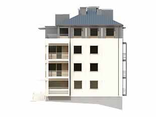 Dom mieszkalny, wielorodzinny (11-mieszkaniowy), podpiwniczony. W piwnicy zaprojektowano sześć stanowisk garażowych, komórki lokatorskie i pomieszczenie techniczne. Na czterech kondygnacjach mieszkalnych zaprojektowano jedenaście mieszkań. Zwarta bryła budynku.Konstrukcja