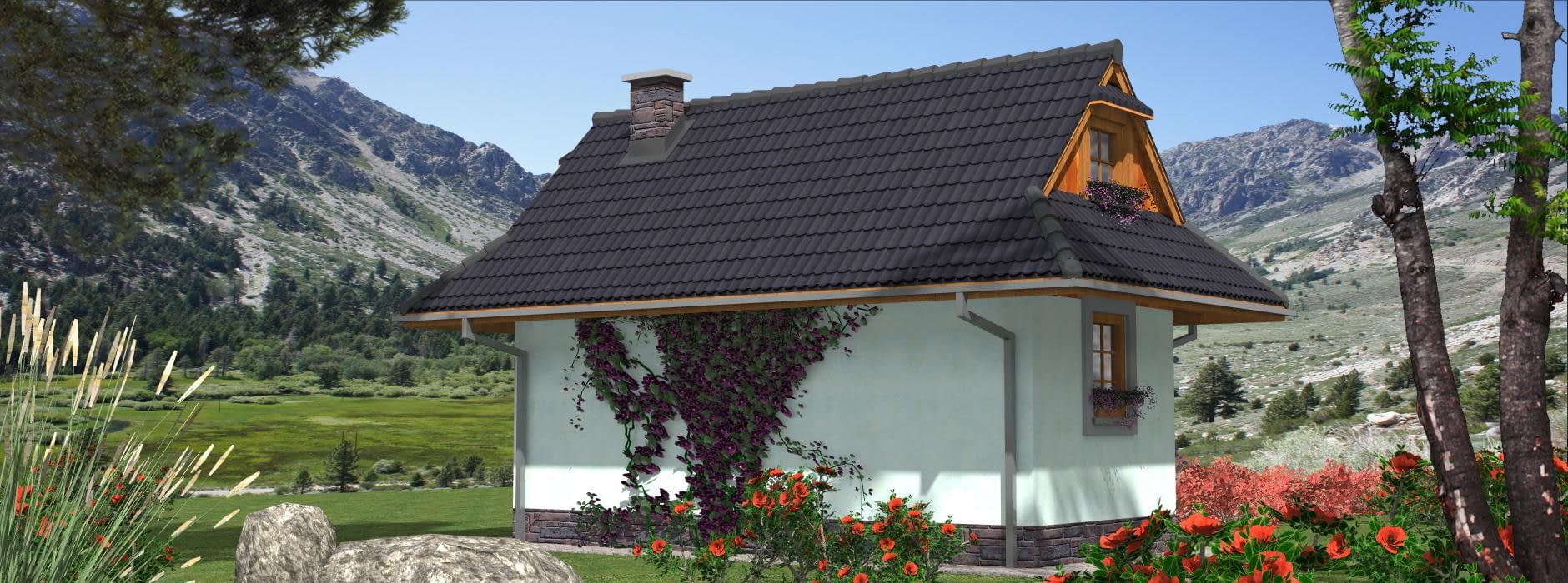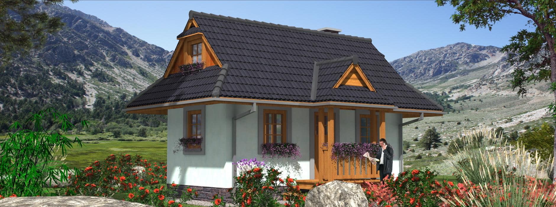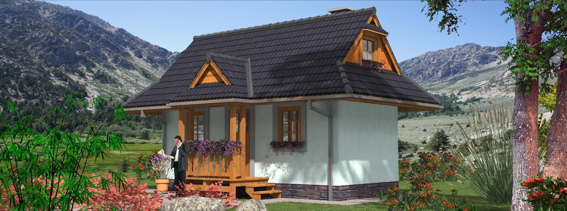 budynek letniskowy parterowy z podddaszem sypialnym lub wersja jako budynek gospodarczyRzuty