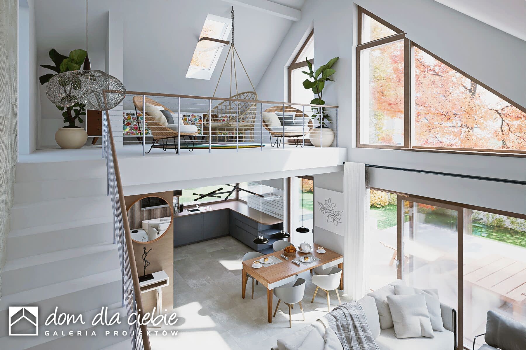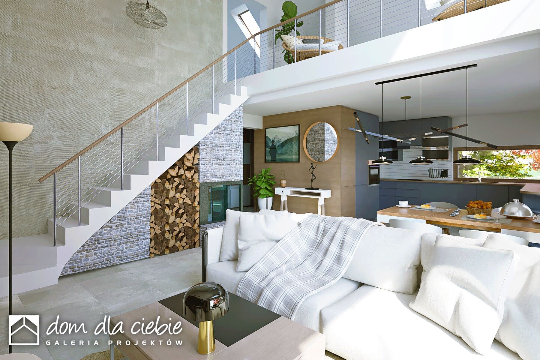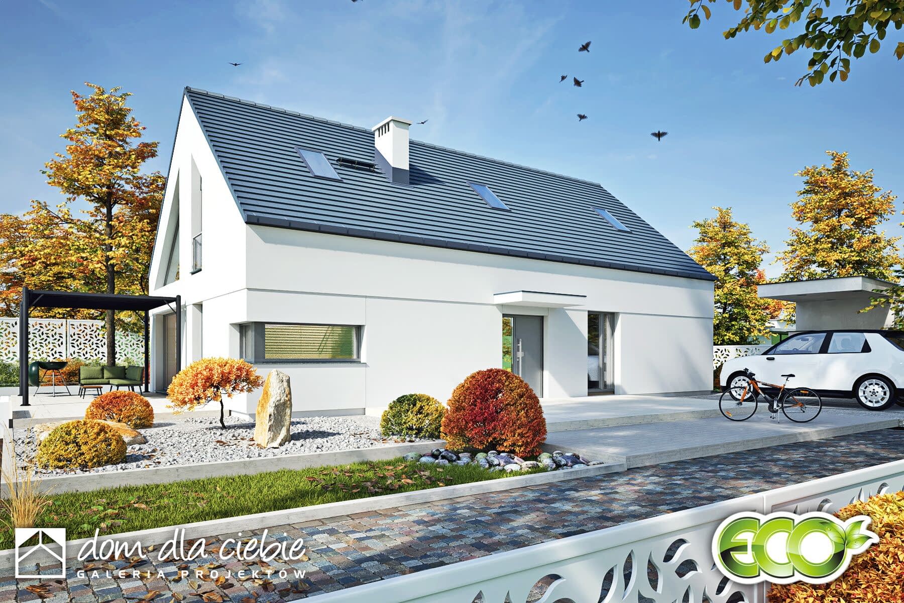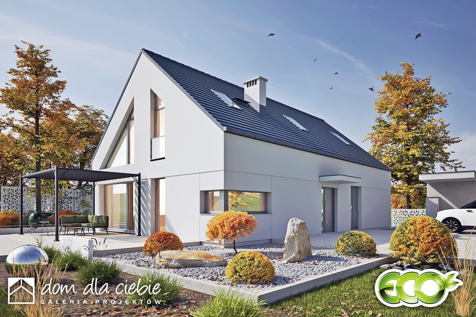 Lena to nowoczesny dom z poddaszem do adaptacji, wyróżniający się prostą bryłą, dużymi przeszkleniami i elegancką białą elewacją ze szarą dachówką.Na parterze zaplanowano trzy sypialnie oraz przestronną strefę dzienną z salonem, kuchnią i jadalnią z wyjściem na taras. Dodatkowo przewidziano łazienkę, wc, spiżarnię, pomieszczenie techniczne i wygodne wejście z miejscem na szafy.Poddasze pozostaje otwarte na aranżację – można tam stworzyć dodatkowe pokoje, łazienkę, gabinet lub przestrzeń rekreacyjną.Dom łączy nowoczesny wygląd z funkcjonalnością i dbałością o środowisko