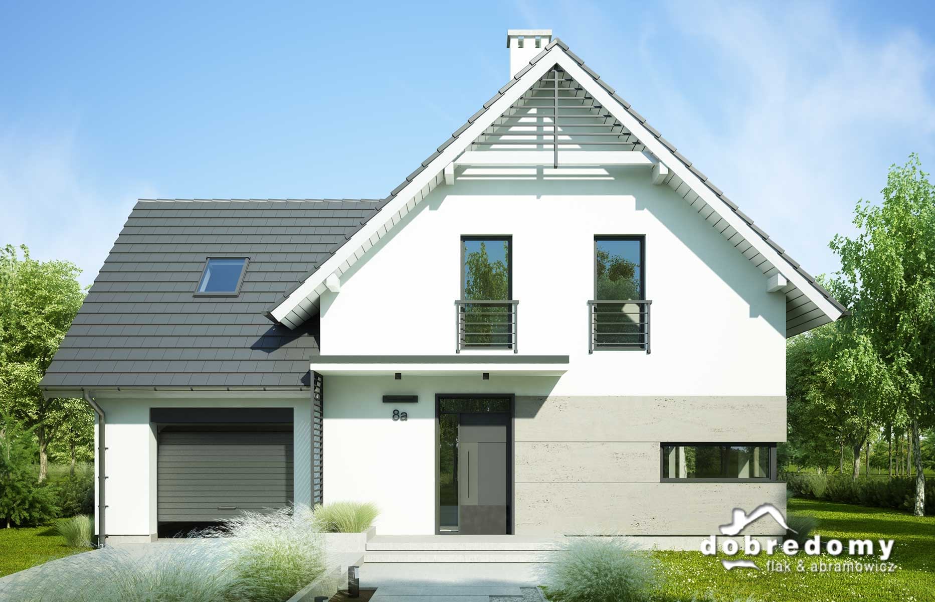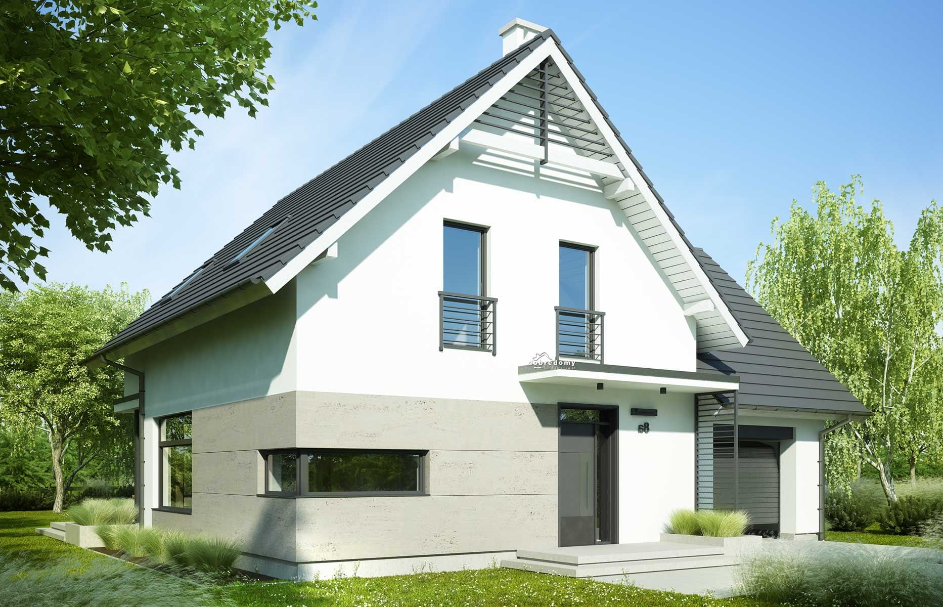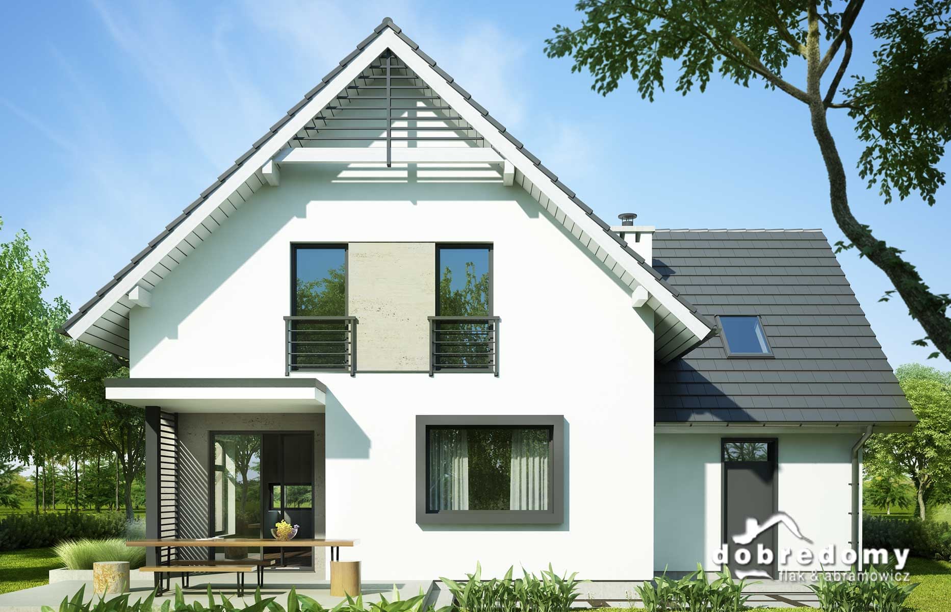 Elewacje pokryte tynkiem strukturalnym w systemie ociepleń Termo Organika i płytami włókno-cementowymi (lub kamiennymi). W projekcie zastosowano okna dachowe marki FAKRO. Pokrycie dachu - dachówka ceramiczna lub cementowa CREATON.