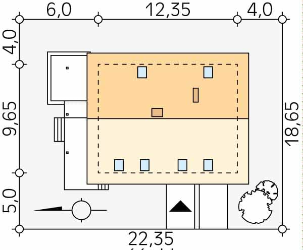 - Minimalne wymiary działki18.65 x 22.35m