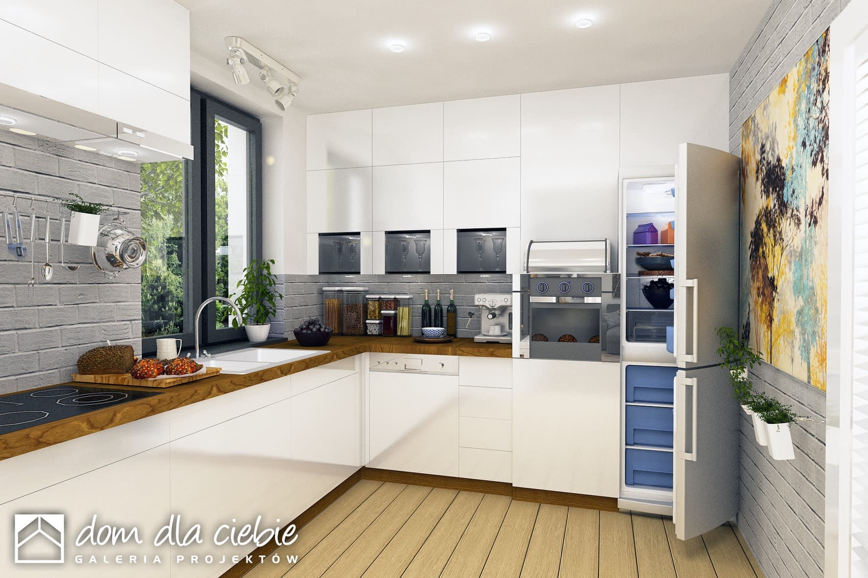 Projekt gotowy Lerka to dom stanowiący doskonały melanż tradycji i nowoczesności. Dom charakteryzuje się prostą formą i nieskomplikowaną funkcją użytkową. Minimalizm i ład w elewacjach budynku wpływa na obniżenie kosztów budowy. Ze względu na ekonomię zrezygnowano z balkonów i lukarn, w zamian zastosowano nowoczesne okna typu porfenetr zapewniające doskonałe doświetlenie pomieszczeń. Parter stanowiący dzienną strefę domu zawiera hol, łazienkę, salon z kuchnią i spiżarnią a także dodatkowy pokój z przeznaczeniem na gabinet lub pokój gościnny.Piętro czyli strefa nocna to 3 wygodne sypialnie oraz łazienka a także garderoba z pralnią.