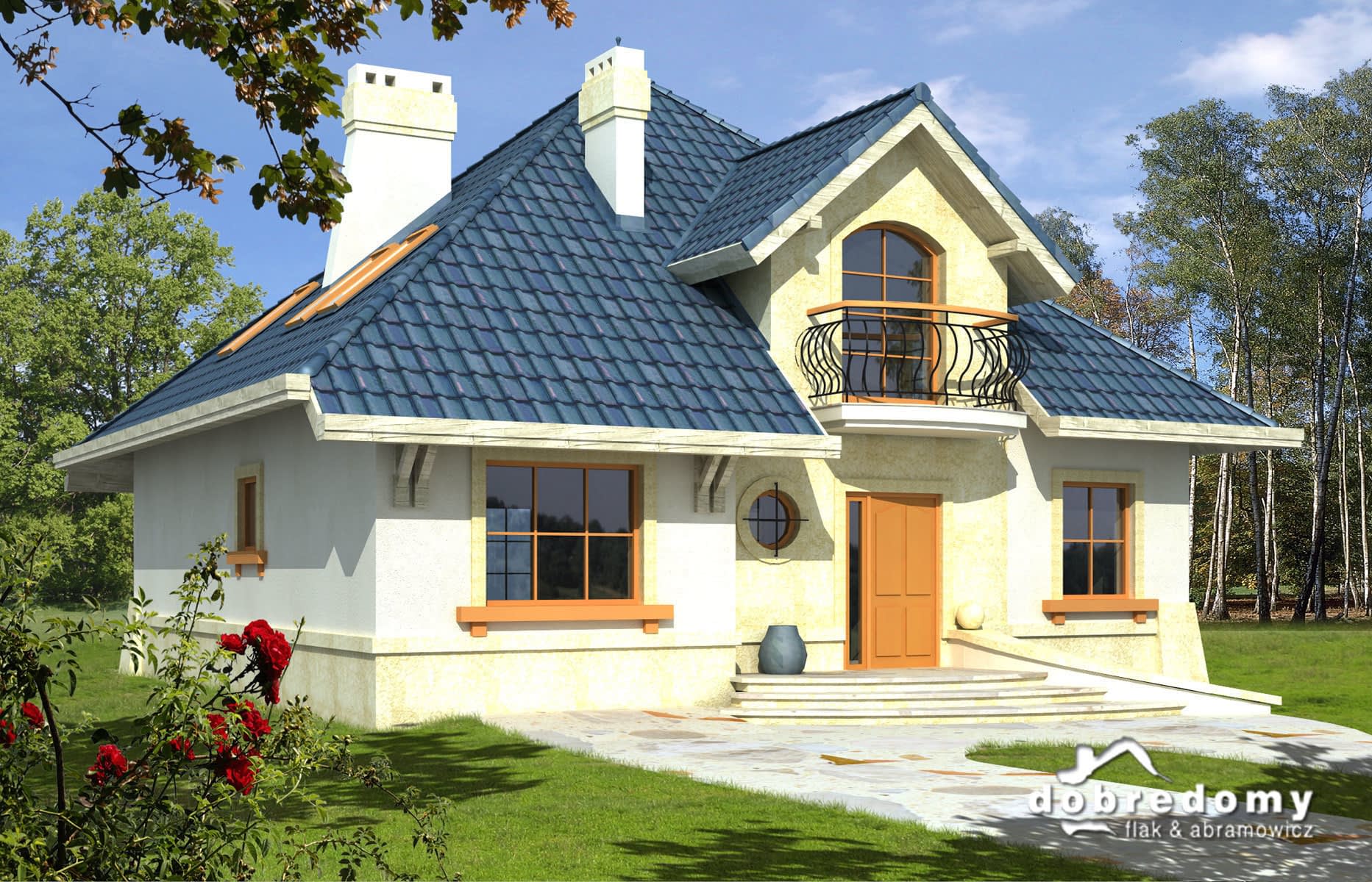 Elewacje pokryte tynkiem strukturalnym w systemie ociepleń Termo Organika. W projekcie zastosowano okna dachowe marki FAKRO. Pokrycie dachu - dachówka ceramiczna lub cementowa CREATON.