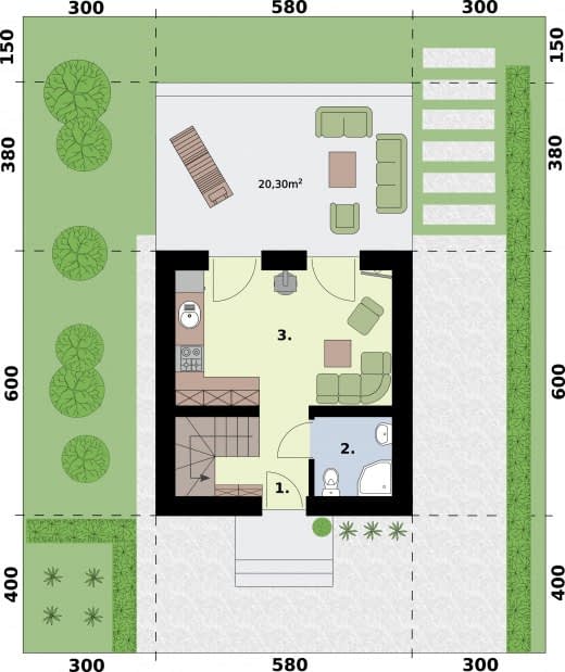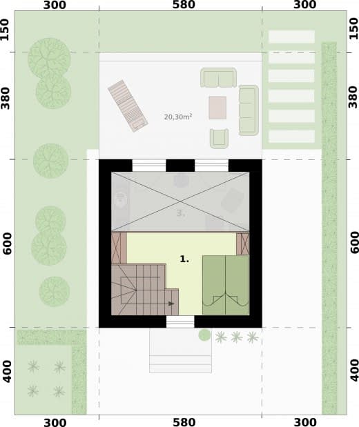 - Minimalne wymiary działki14 x 13.8m
