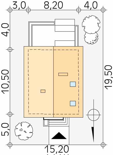 - Minimalne wymiary działki19.5 x 15.2m