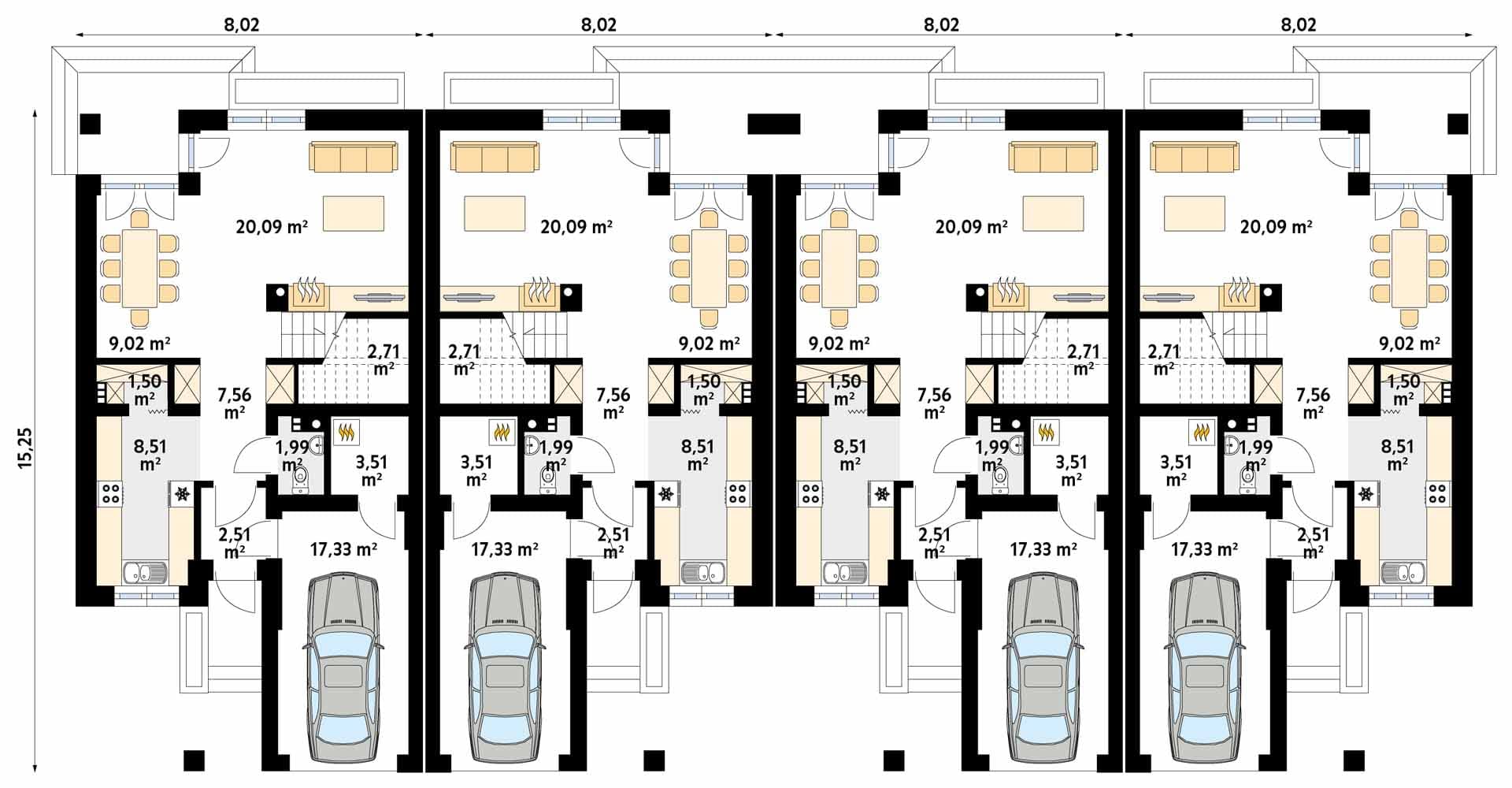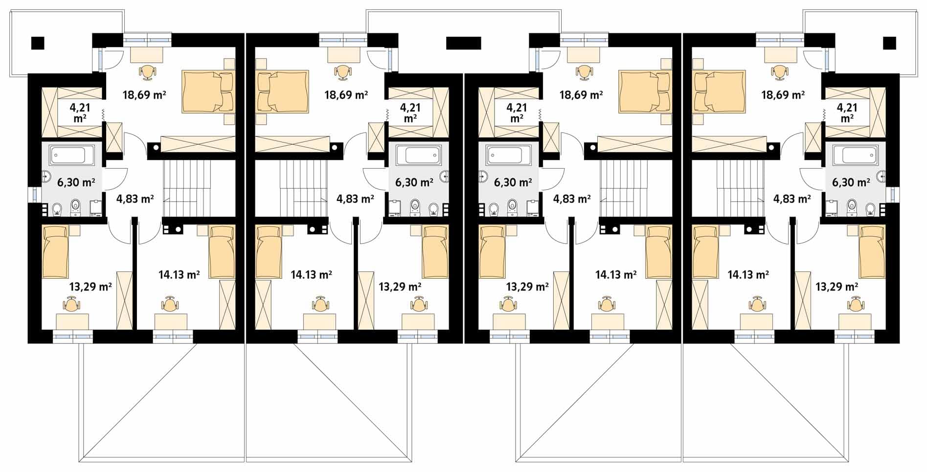 Limba to projekt budynku w zabudowie szeregowej. Poszczególne segmenty zostały zaprojektowane z myślą o 4-osobowych rodzinach. Budynek posiada dwie pełne kondygnacje stanowiące oddzielne strefy funkcjonalne. Część dzienna, czyli parter z otwartym salonem umożliwia ciekawą aranżację przestrzeni, a dodatkowym atutem jest kuchnia wyposażona w spiżarnię. Prywatne piętro zapewnia wygodę i intymność domowników. Cena dotyczy jednego segmentu. O inne konfiguracje zapytaj telefonicznie.Konstrukcja