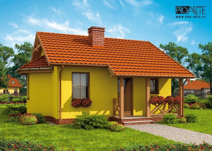 W domku jest jedna sypialnia, pokój dzienny połączony z aneksem kuchennym, łazienka. Ten projekt może być idealnym wyborem dla emerytów, których dzieci opuściły już rodzinny dom, szukających czegoś przytulnego i skromnego na lata emerytury. Znakomicie sprawdzi się też w przypadku każdej pary.