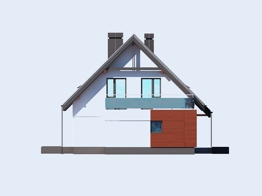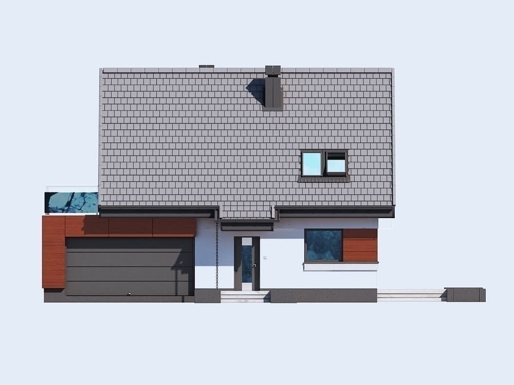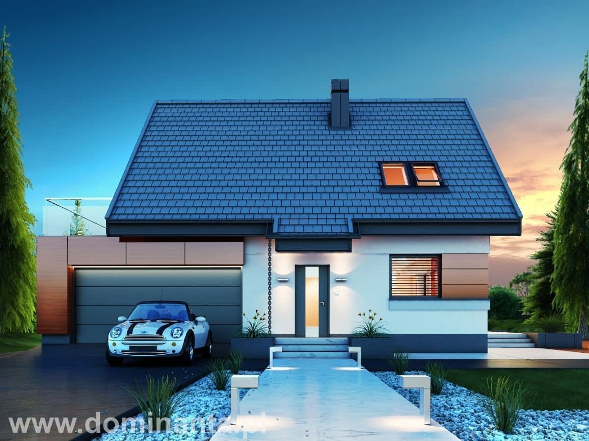 - mały jednorodzinny dom parterowy z poddaszem użytkowym i garażem dwustanowiskowym (istnieje wersja z garażem jednostanowiskowym), niepodpiwniczony