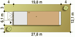 - Minimalne wymiary działki27.8 x 12.1m