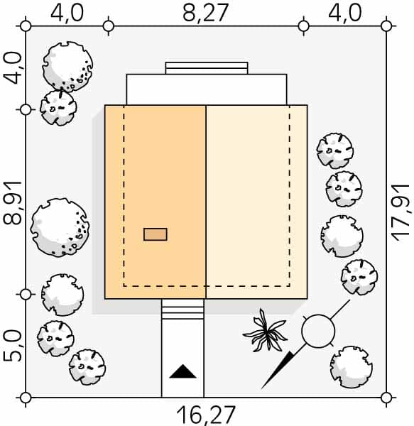 - Minimalne wymiary działki17.91 x 16.27m