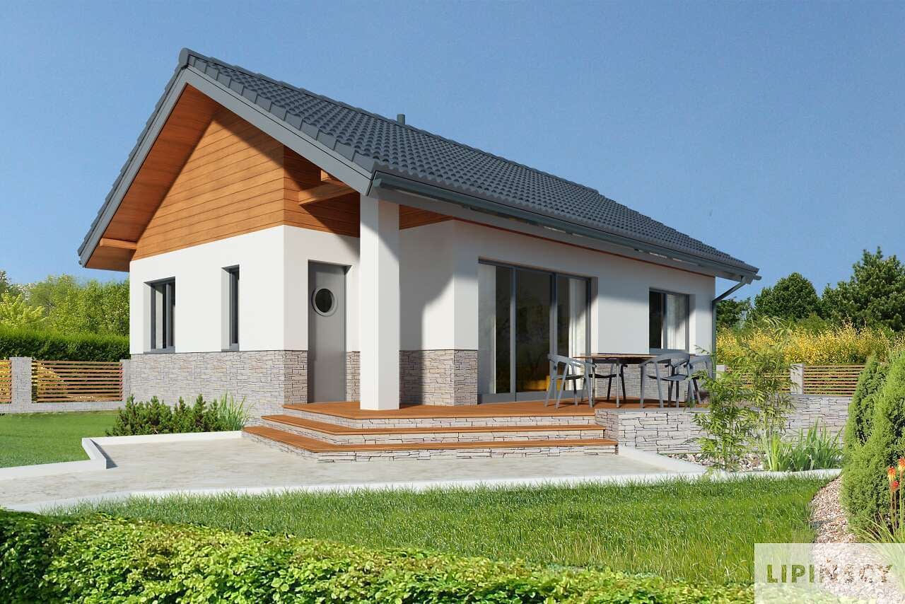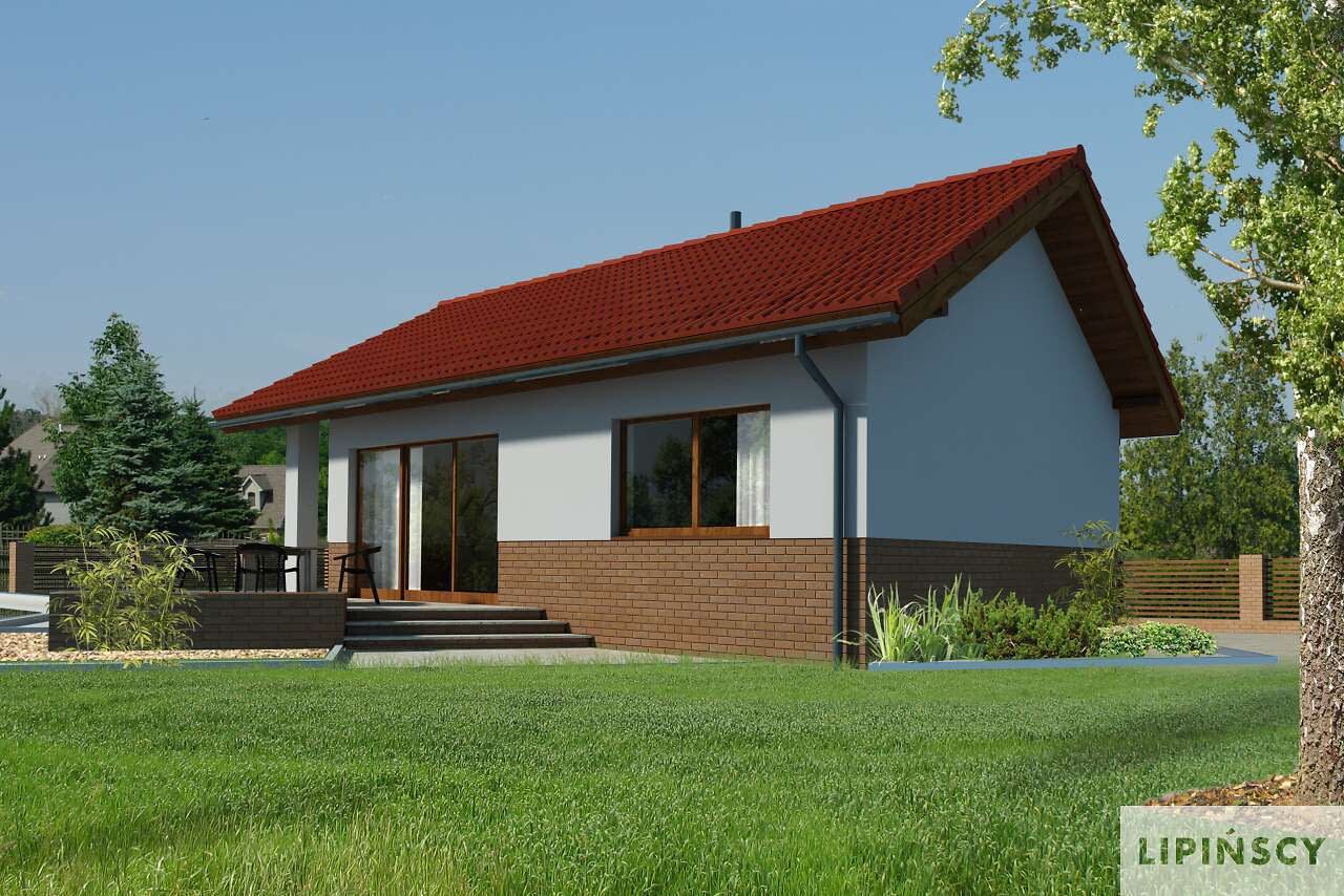 Kolejna odsłona popularnego projektu niewielkiego domku parterowego Lucca, bazująca na wersji B, w której okna narożne zastąpiono oknami zwykłymi. Ten mały, parterowy dom to doskonała propozycja dla Inwestorów, szukających domu taniego w budowie, a jednocześnie o funkcjonalnie zaplanowanym wnętrzu. Mieszkańcy mają do dyspozycji salon z kominkiem, dwie sypialnie, kuchnię, łazienkę i pomieszczenie gospodarcze. Ozdobą domu jest taras, na który można wyjść z salonu. Ciekawie zaaranżowane zadaszone wejście jest nie tylko praktyczne, ale również zdobi budynek.