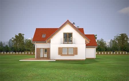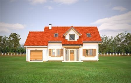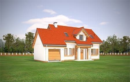 Projekt domu Lucky to dom jednorodzinny, dla 4-6 osobowej rodziny, parterowy z użytkowym poddaszem, zaprojektowany na planie litery „L”, z osłoniętym z dwóch stron tarasem, oraz z dobudowanym garażem. Dom Lucky dzięki aż sześciu pokojom doskonale nadaje się dla większej rodziny, z większą gromadką dzieci, bądź dla rodziny trzypokoleniowej. Architektura domu jest bezpretensjonalna - domek jest po prostu ładny. Udane proporcje i połączenie brył tworzy budynek o ludzkiej skali, nie przesadzony, który doskonale wpasuje się w każde otoczenie. Połączenie tradycyjnej stylistyki z nowoczesnymi materiałami i kolorystyką tworzą udany efekt. Parter domu to otwarta przestrzeń dzienna, z centralnym holem i dekoracyjnymi schodami, salon z kominkiem i ścianą TV, otwartą kuchnią i jadalnią. Razem pomieszczenia te tworzą jednoprzestrzenne duże wnętrze dzienne, ładnie otwarte na taras i ogród. Na parterze mamy dodatkowy pokój, łazienkę, kotłownię i garaż. Z kuchni dostępna jest spiżarnia. Na poddaszu zaprojektowano aż cztery pokoje, w tym osobny apartament rodziców z własną łazienką, garderobą i balkonem, oraz dużą łazienkę dla wszystkich domowników. Funkcjonalność wnętrza i sensowne wykorzystanie przestrzeni idzie w projekcie w parze z energooszczędnymi rozwiązaniami. Dom jest bardzo dobrze izolowany - w łatwy sposób można go dostosować do standardu NF40. Budynek ma prostą konstrukcję - będzie łatwy w budowie, a dzięki energooszczędności, niedrogi w późniejszym utrzymaniu. Projekt domu Lucky posiadamy również w odbiciu lustrzanym. Zapraszamy !
