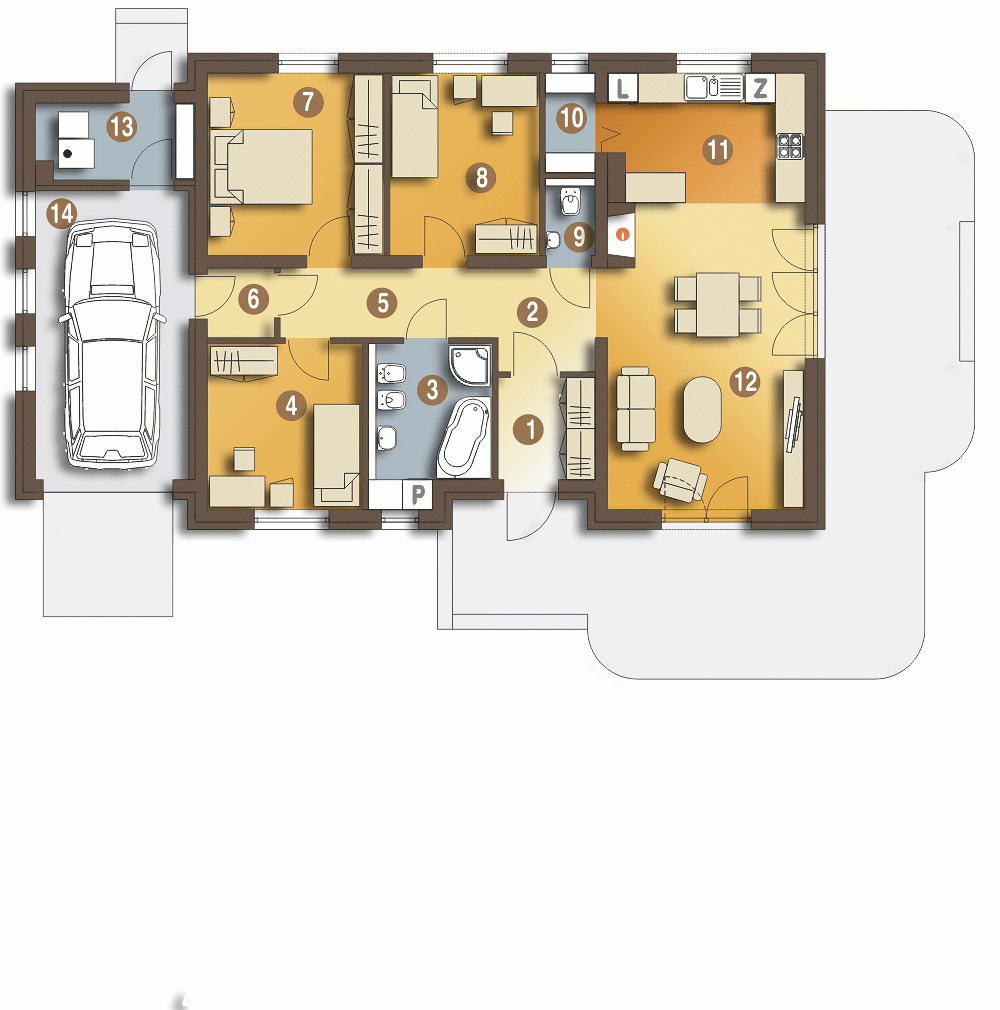 Nasze projekty oferujemy w 3 egzemplarzach, zawierających projekt architektoniczno-budowlany i projekt techniczny. Projekt zagospodarowania działki lub terenu nie wchodzi w skład projektu oferowanego do sprzedaży. Projekt ten należy zlecić we własnym zakresie lokalnemu projektantowi, który opracuje go na podstawie danych zawartych w projekcie architektoniczno-budowlanym i technicznym, po dostosowaniu projektu do warunków lokalnych i wymagań inwestora.