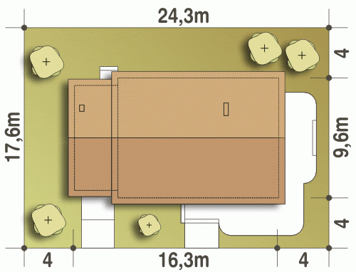- Minimalne wymiary działki17.6 x 24.3m