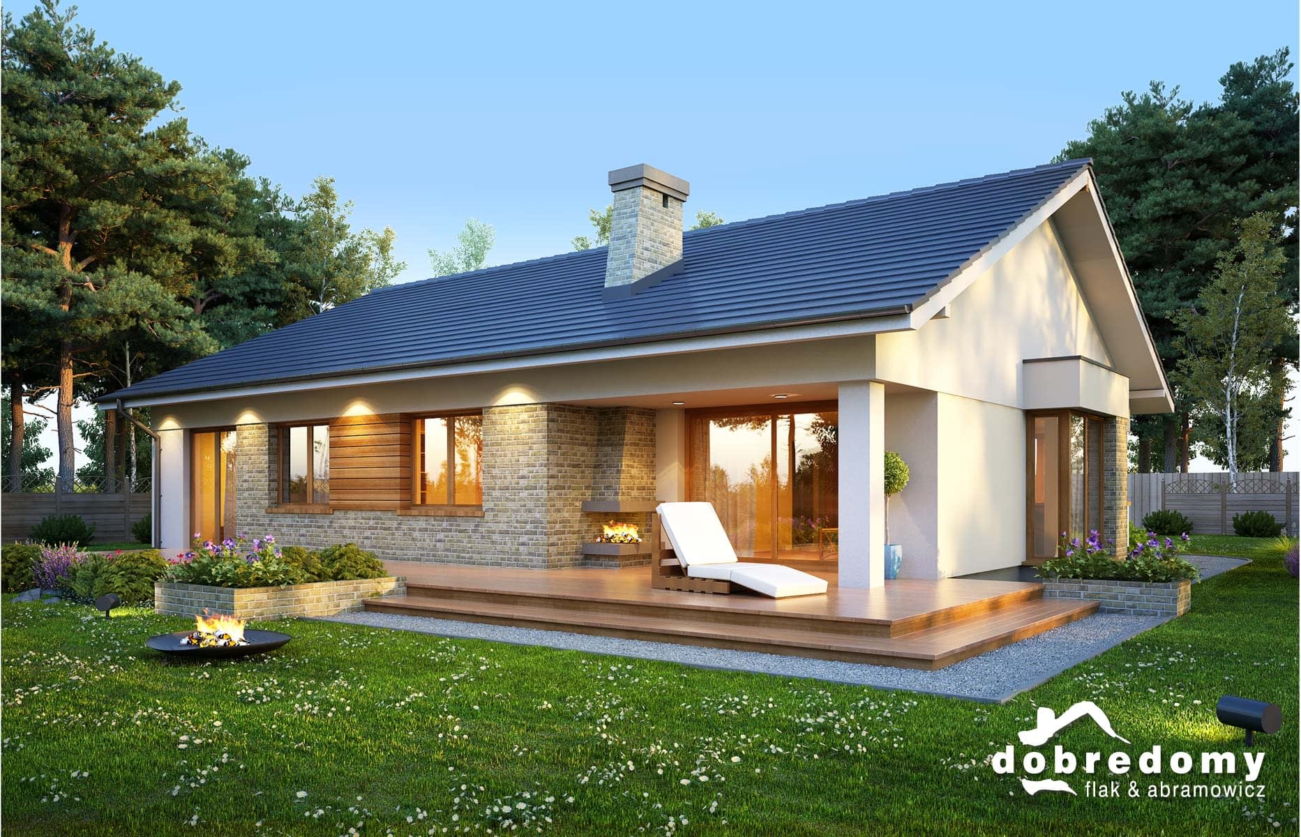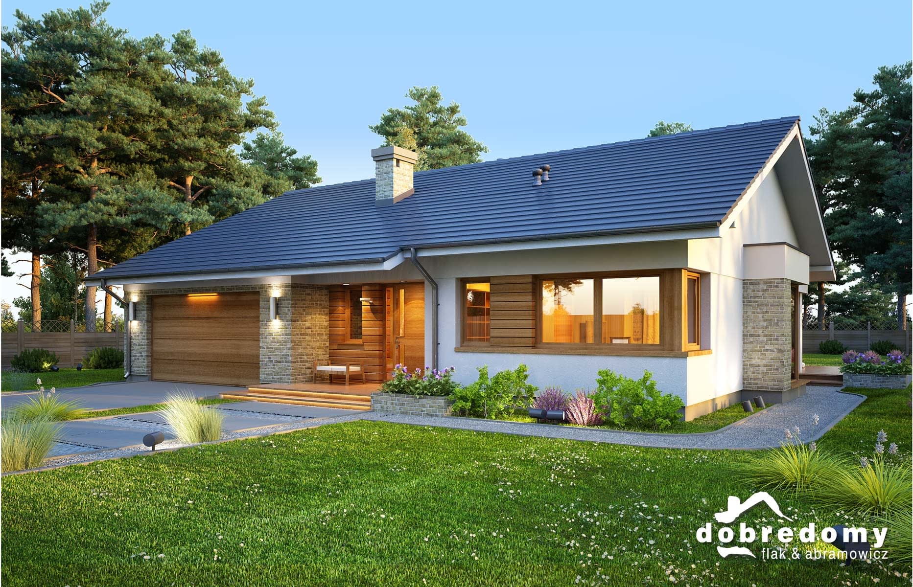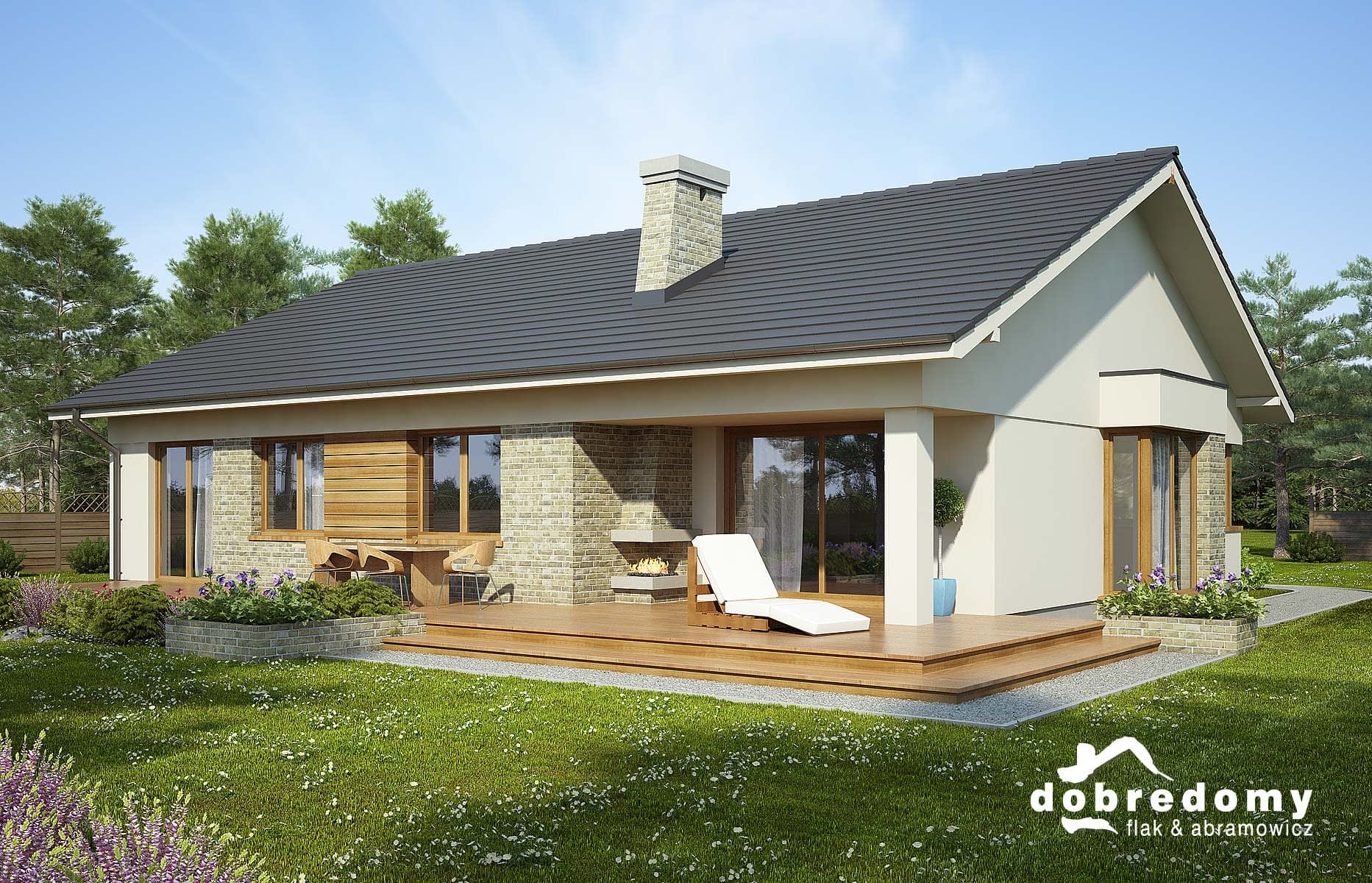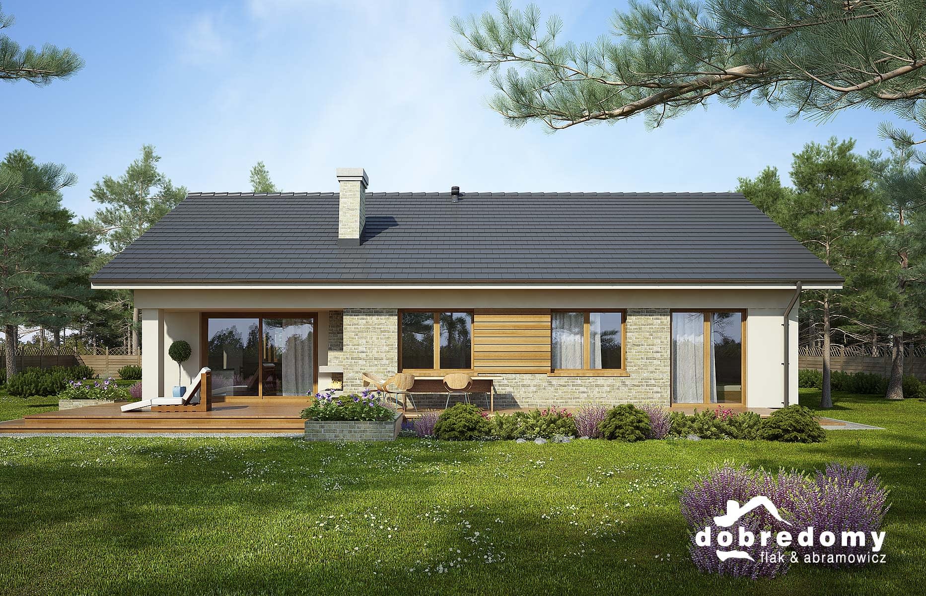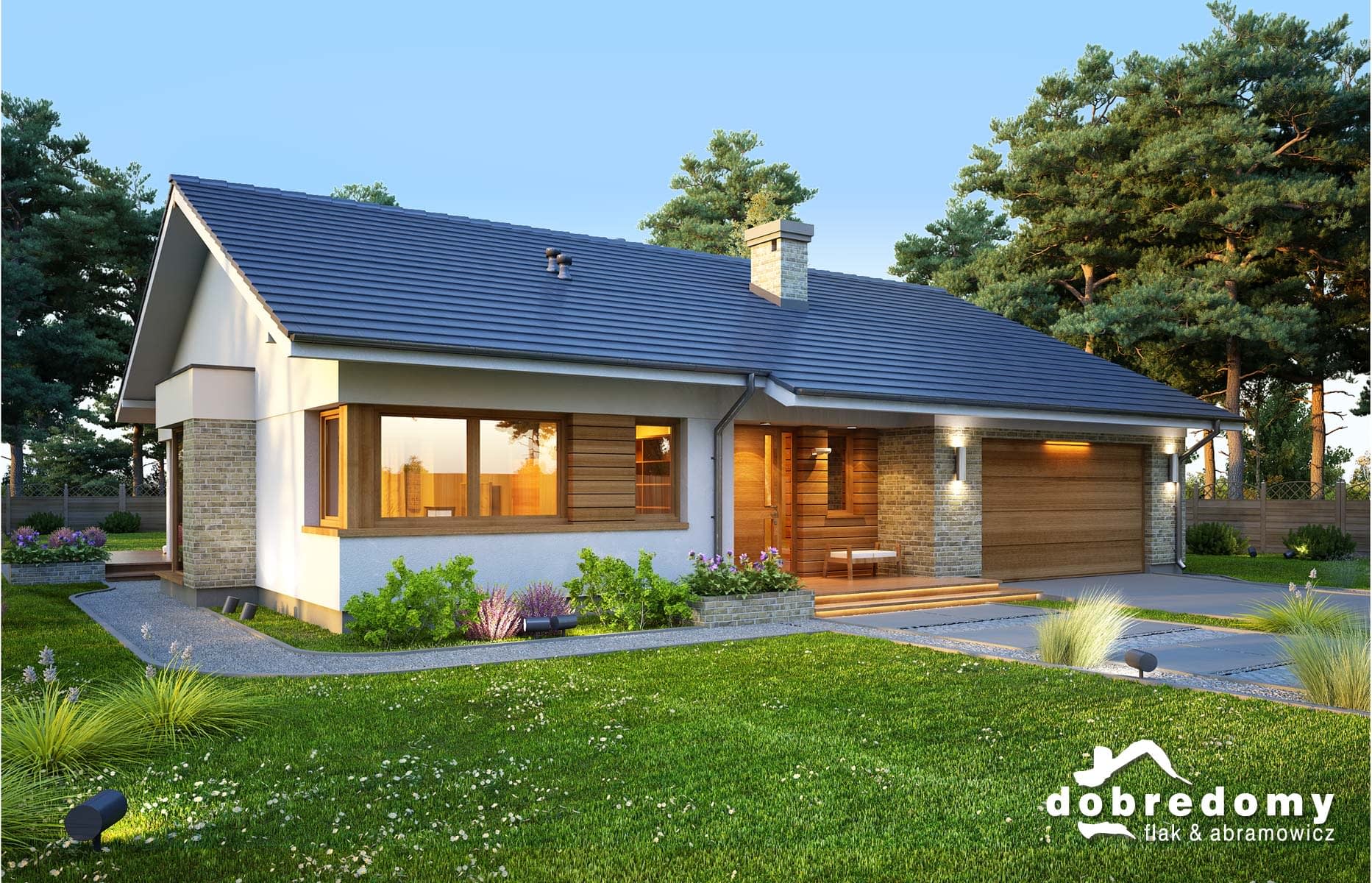 Elewacje pokryte tynkiem strukturalnym w systemie ociepleń Termo Organika oraz okładziną klinkierową i drewnianą. Pokrycie dachu - dachówka ceramiczna lub cementowa CREATON.