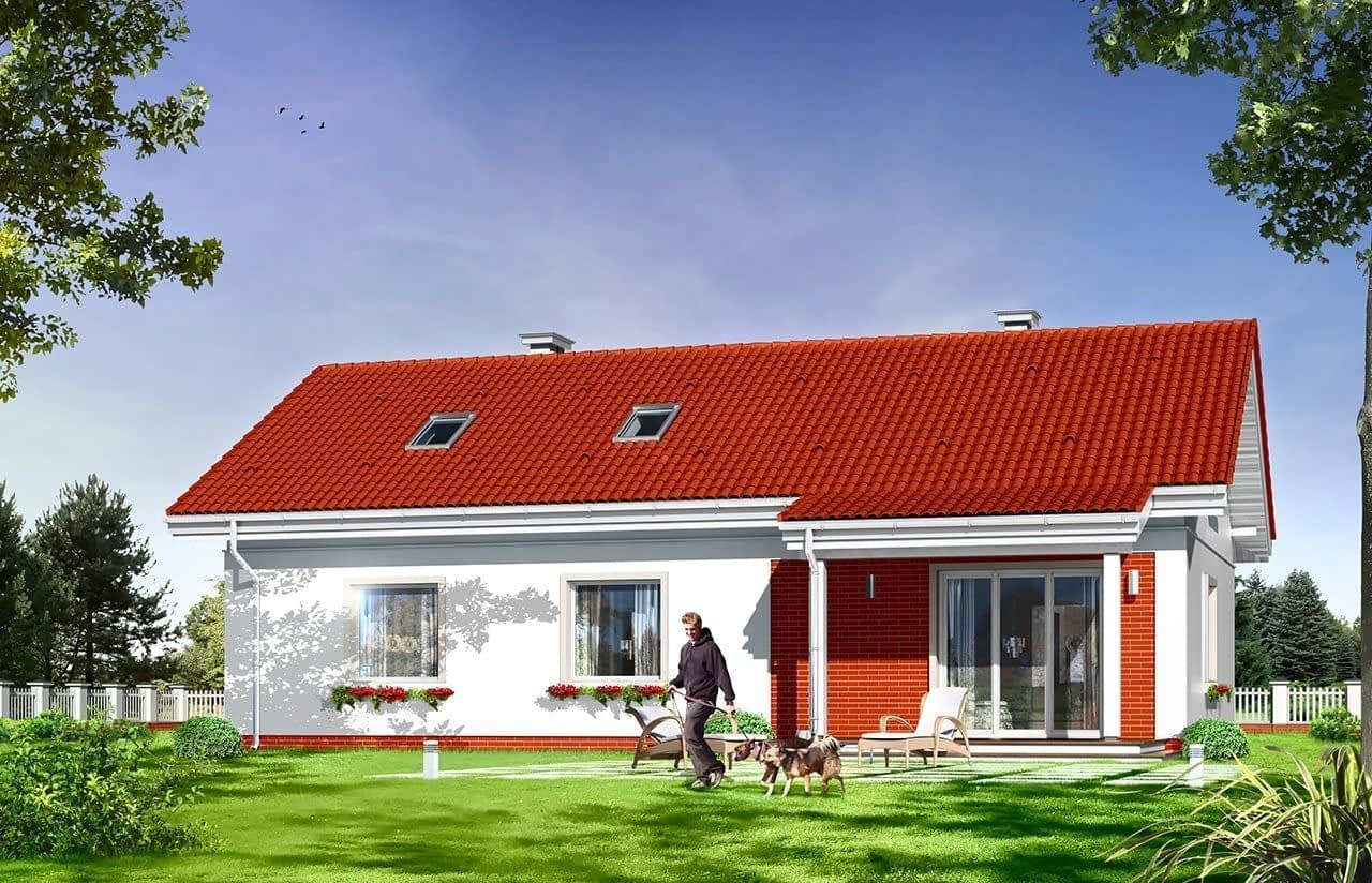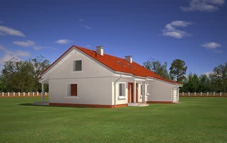 Projekt domu Luna to budynek jednorodzinny parterowy o powierzchni użytkowej 91,81 m2. Dom zbudowany jest na planie prostokąta, przekryty dwuspadowym dachem, z częściowo wbudowanym w bryłę budynku garażem 1 st. Projekt domu Luna przeznaczony jest dla 4 osobowej rodziny, której może się przydać z czasem więcej miejsca na dodatkowe pomieszczenia - dzięki strychowi do zaadaptowania na poddasze użytkowe.ArchitekturaW projekcie domku Luna z garażem bezpretensjonalna współczesna architektura domu parterowego. Dom łączy w sobie tradycyjną formę i nowoczesne materiały, kolorystykę i detal. Całość tworzy skromny, ale bardzo sympatyczny wygląd domu.Projekt Luna wnętrzeWnętrze domku Luna z garażem zorganizowano na jednej kondygnacji parteru, rozdzielając ją na część dzienną – z salonem, holem i częściowo otwartą kuchnią ze spiżarką, część nocną – z trzema sypialniami i łazienką, oraz część gospodarczą – z garażem i kotłownią (pomieszczenie gospodarcze).Na niewielkiej powierzchni użytkowej projektu Luna udało się zorganizować przestronne i komfortowe mieszkanie dla domowników.W projekcie domu Luna, z holu schodami możemy dostać się na strych, który w drugim etapie może być zagospodarowany na poddasze użytkowe z dodatkowymi pokojami.Gotowy projekt domku jednorodzinnego Luna z garażem to doskonała propozycja dla osób ceniących sobie wygodę mieszkania na parterze, chcących mieć "zapas" miejsca do wykorzystania w postaci poddasza, chcących wybudować tani, ekonomiczny i energooszczędny dom. Koszty budowy domu luna został oszacowany na 184715 zł za stan surowy zamknięty, a całkowity koszt budowy na 290 tys zł. Pracownia MG Projekt posiada również wersję odbicia lustrzanego projektu Luna z garażem.