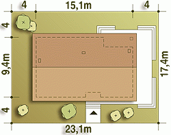 - Minimalne wymiary działki17.4 x 23.1m