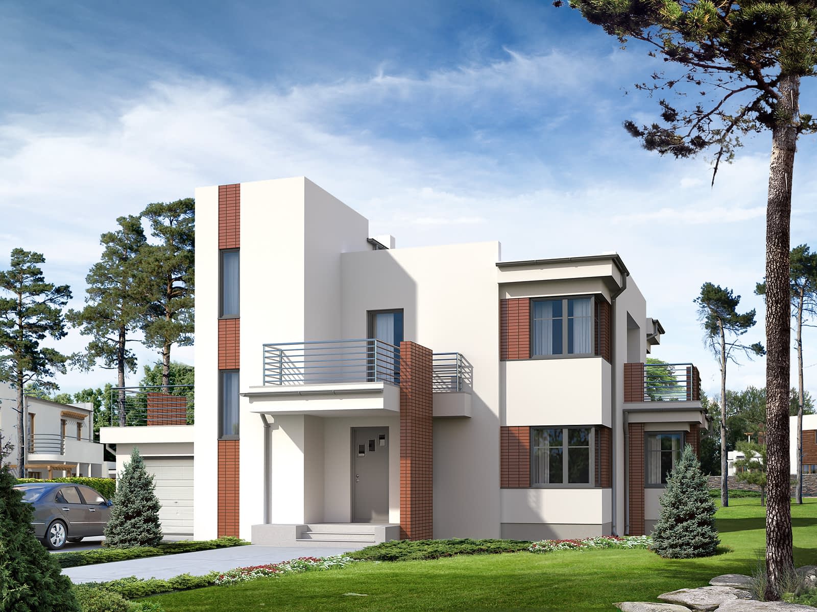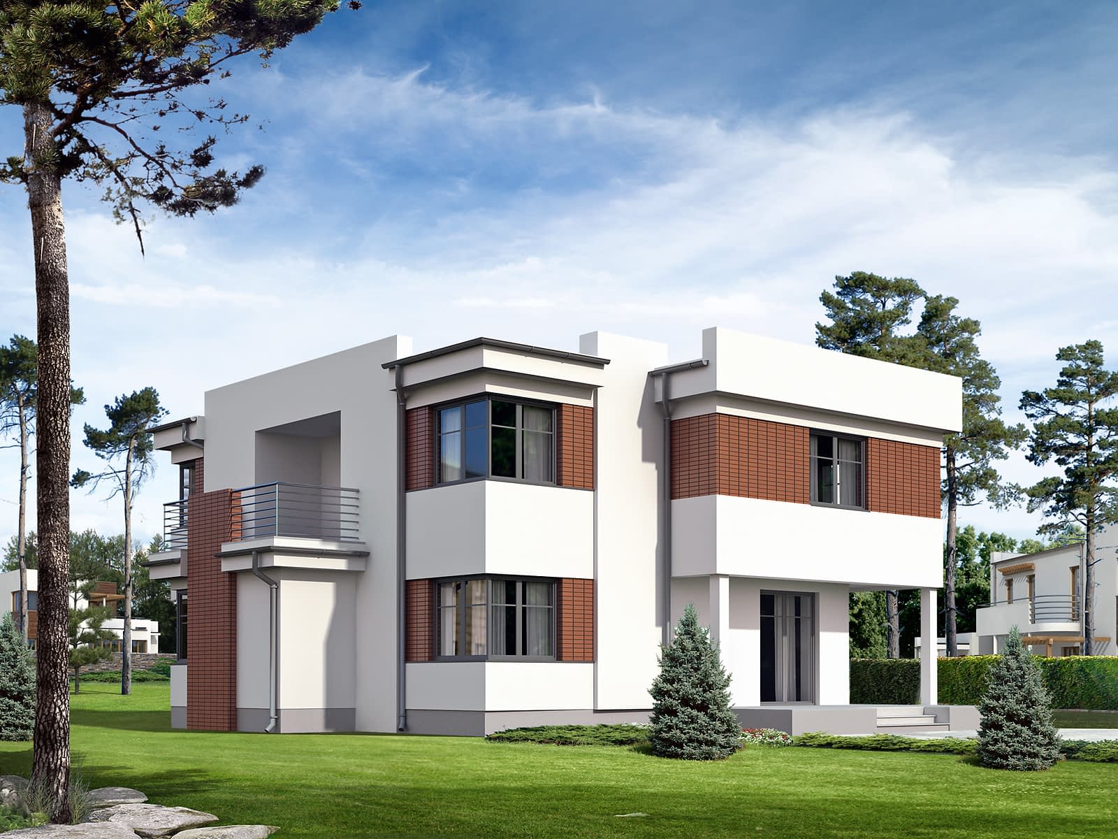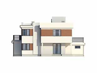 Dom jednorodzinny, przeznaczony dla 4-osobowej rodziny. Nowoczesna bryła z dachami płaskimi zapewnia funkcjonalność budynku również na piętrze. Na parterze zaprojektowano pomieszczenia gospodarcze, salon, dużą jadalnię i kuchnię. Na piętrze znajdują się trzy sypialnie z garderobami i łazienka.Konstrukcja
