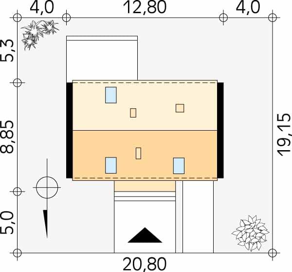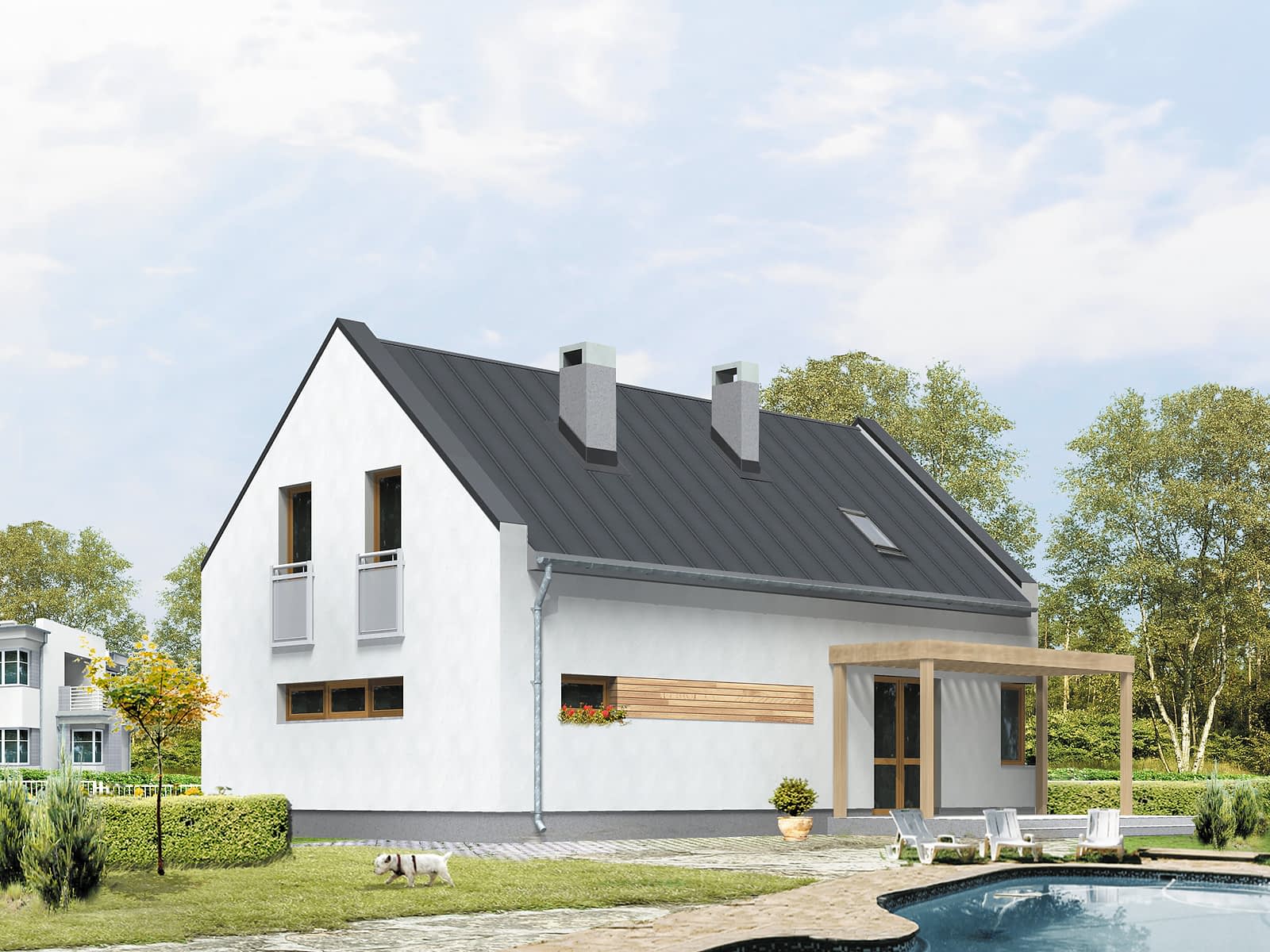 Prosty, funkcjonalny dom jednorodzinny z użytkowym poddaszem dla 4 – 5-osobowej rodziny. Niewielkie rozmiary budynku pozwalają na usytuowanie go na małej działce. Dom charakteryzuje się zwartą bryłą o nowoczesnym wyglądzie.Konstrukcja