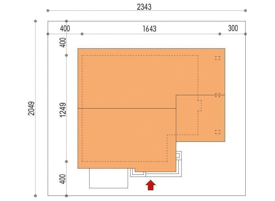 - jednorodzinny dom parterowy z dwustanowiskowym garażem (istnieje wersja jedostanowiskowa), niepodpiwniczony