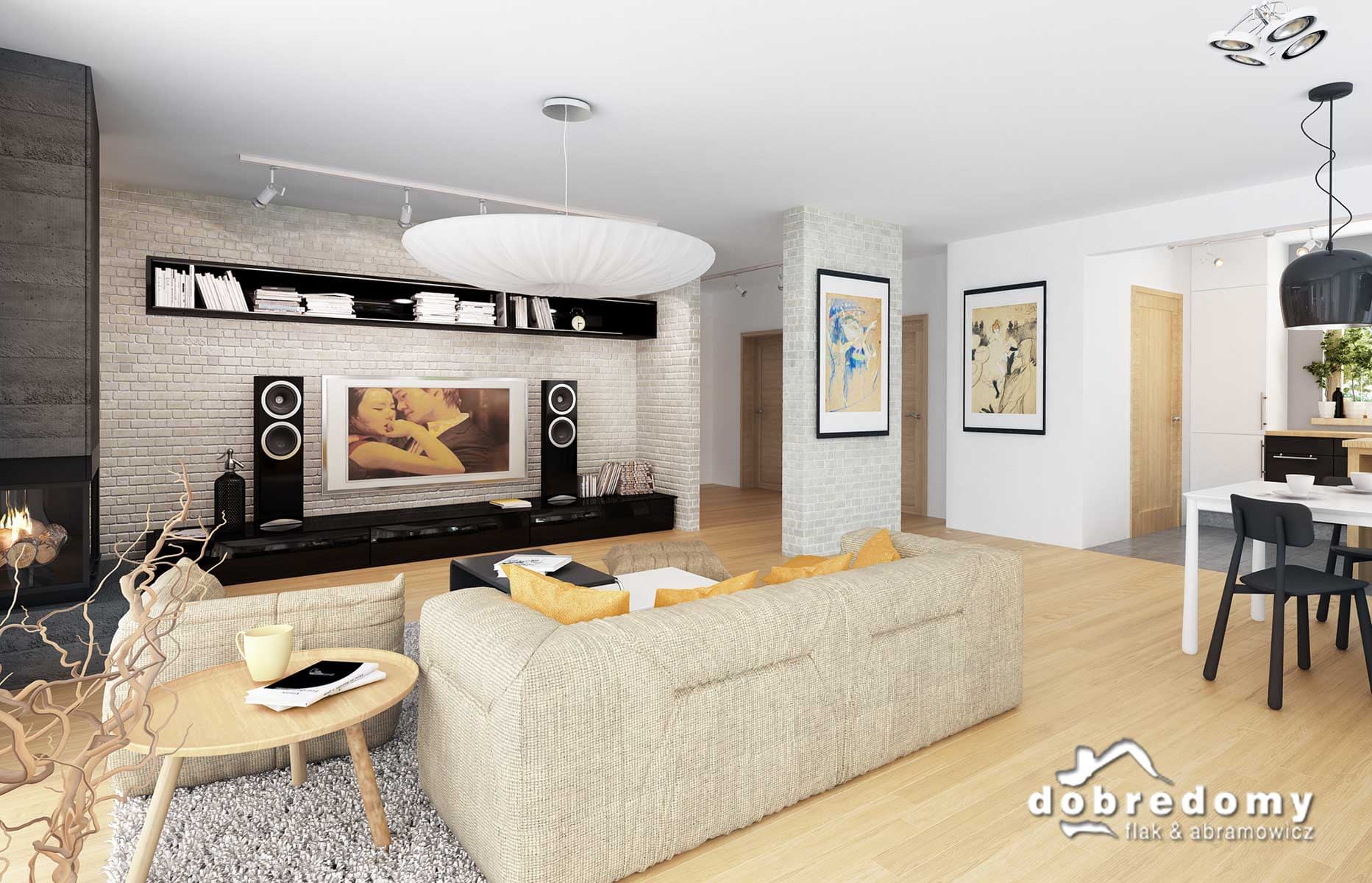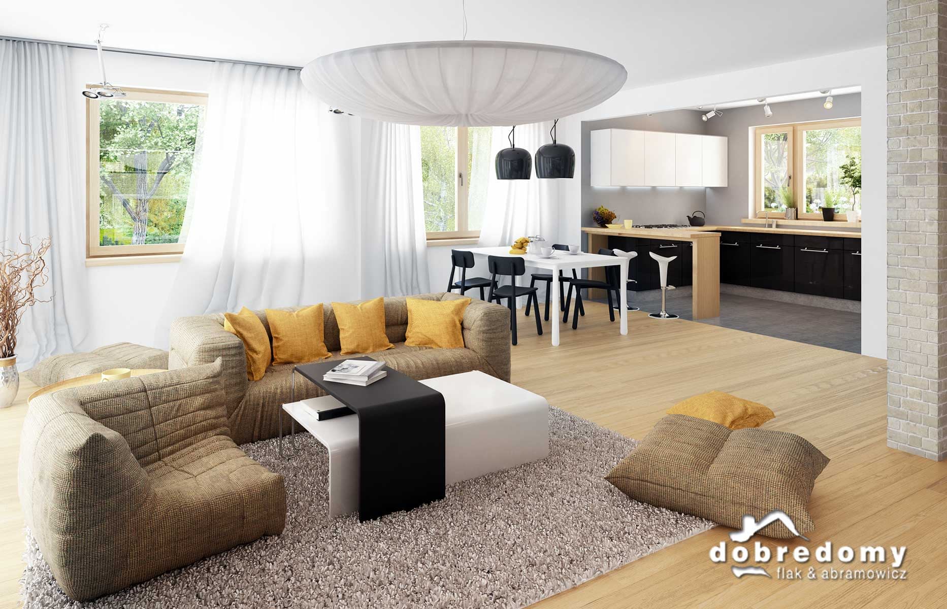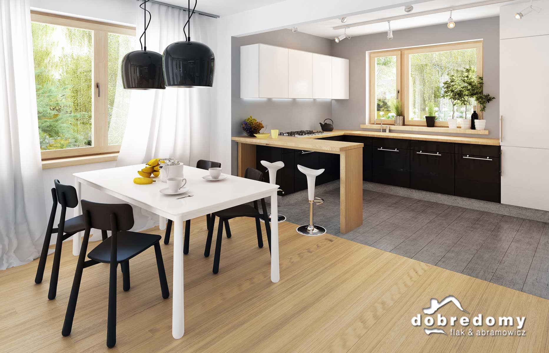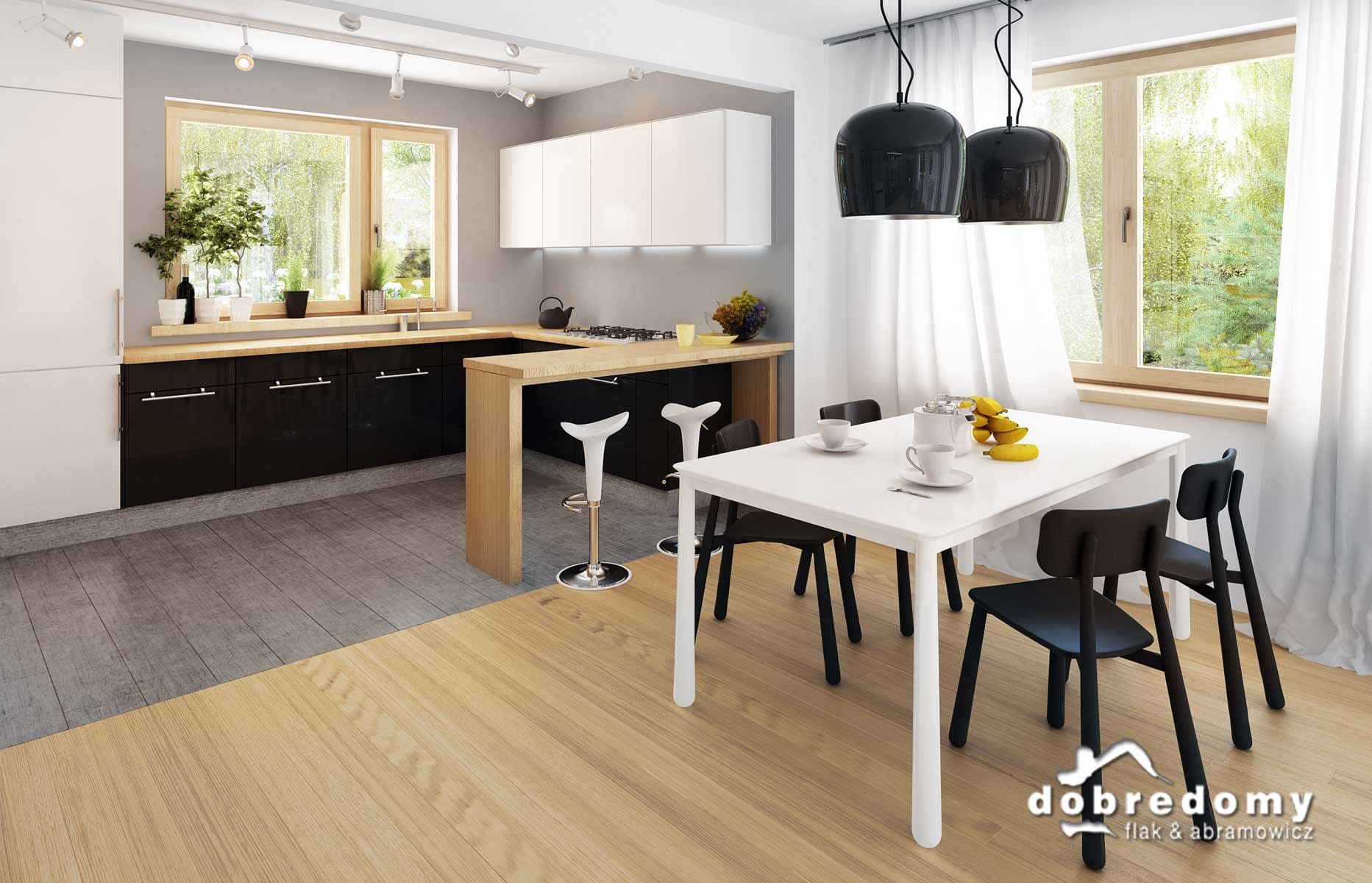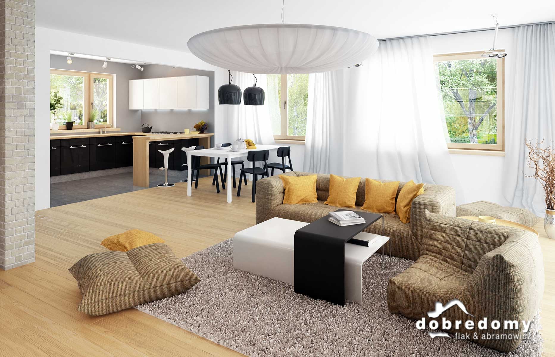 Dom parterowy, niepodpiwniczony, przeznaczony dla 4-5 osobowej rodziny. W części dziennej zlokalizowano otwartą kuchnię połączoną z pokojem dziennym poprzez jadalnię. Sypialnie z ogólnodostępną łazienką i garderobą zaprojektowano w odizolowanej części nocnej. Dodatkowo sypialnia rodziców posiada własną garderobę i łazienkę. Dostępna wersja projektu w tradycyjnej stylistyce - Afrodyta.