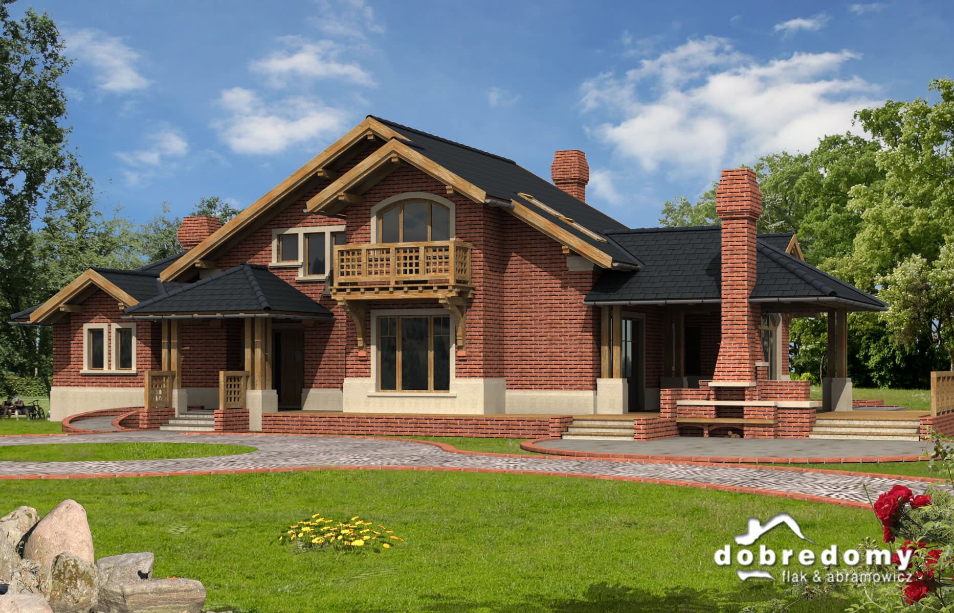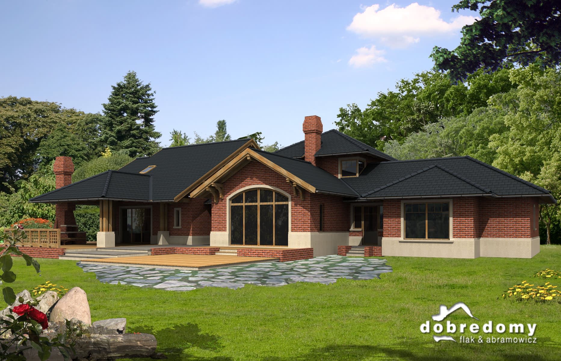 Elewacje pokryte cegłą klinkierową. W projekcie zastosowano okna dachowe marki FAKRO. Pokrycie dachu - dachówka ceramiczna lub cementowa CREATON.
