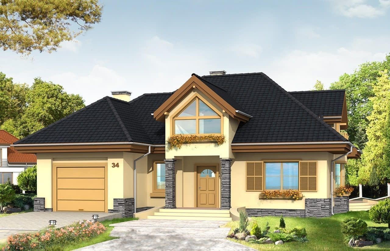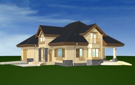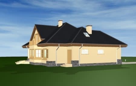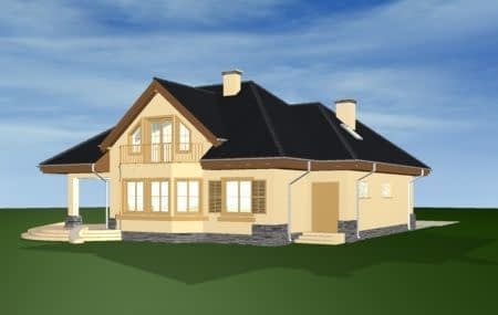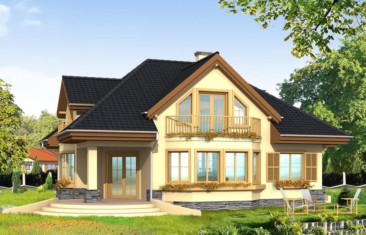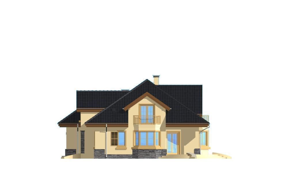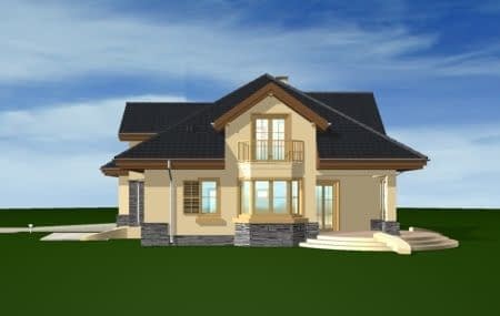 Projekt domu Maja to idealny dom dla rodziny cztero-pięcioosobowej. Powierzchnia użytkowa budynku to 195,13 m2, co pozwoli na wygodne zaaranżowanie wnętrza domu.Projekt domu Maja architektura i wnetrzeProjekt Maja posiada atrakcyjną bryłę z łagodnym, wielospadowym dachem, w który wkomponowano duże lukarny z balkonami oraz obszerny podcień od strony ogrodu. Na parterze projektu domu Maja prócz dużego salonu zaprojektowano dodatkowy pokój - gabinet lub sypialnię gościnną. W części piętra projektu Maja znajdują się sypialnie oraz duża, wygodna łazienka. Strych w projekcie domu Maja nad wbudowanym w bryłę budynku garażem można wykorzystać na przykład jako pralnię z suszarnią.Koszty budowy domu Maja to 204513 zł za stan surowy zamknięty. Do realizacji projektu Maja potrzebna jest działka o wymiarach: szerokość min 22,96 m, długość min 21,98 m.W pracowni MG Projekt dostępna jest także wersja projektu Maja w odbiciu lustrzanym oraz inne jego warianty: projekt domu Maja, projekt domu Maja 2, projekt domu Maja 3, projekt domu Maja 4.