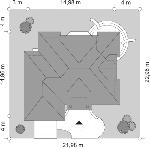 - Minimalne wymiary działki21.98 x 22.28m