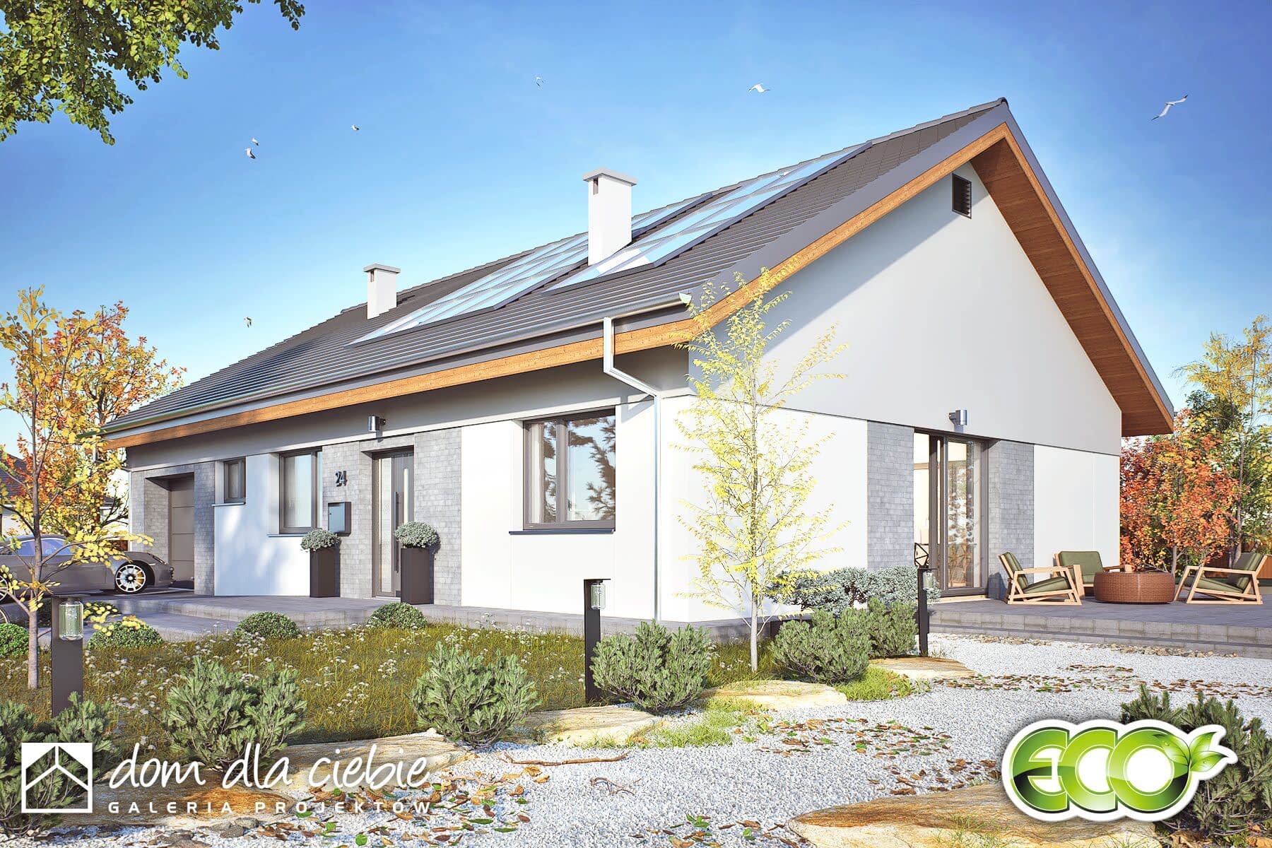 Majka II to projekt wygodnego domu jednorodzinnego z dachem dwuspadowym. Charakteryzuje się estetycznym wyglądem i komfortowymi warunkami dla czteroosobowej rodziny. Jego wszechstronny design sprawia, że pasuje zarówno do nowych osiedli, jak i istniejącej zabudowy. Główne wejście prowadzi do wiatrołapu z szafami i WC, dalej do holu i strefy dziennej z salonem, kuchnią i jadalnią. Te pomieszczenia tworzą jedną przestrzeń z kominkiem i wyjściami na taras. Strefa prywatna obejmuje trzy sypialnie i łazienkę. Korytarz prowadzi do garażu i części technicznej budynku z szafą wnękową. Na poddaszu znajdują się przestrzeń nieużtkowa (strych).Projekt ten oferuje ekonomiczny i ekologiczny dom, łatwy w budowie i eksploatacji, z uniwersalną architekturą.