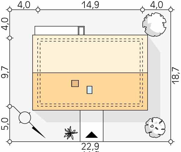 - Minimalne wymiary działki18.7 x 22.9m