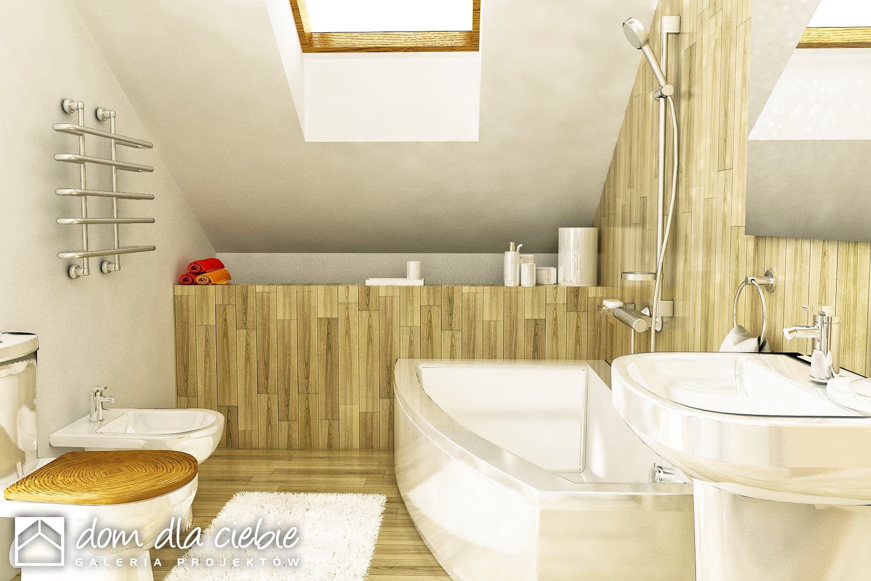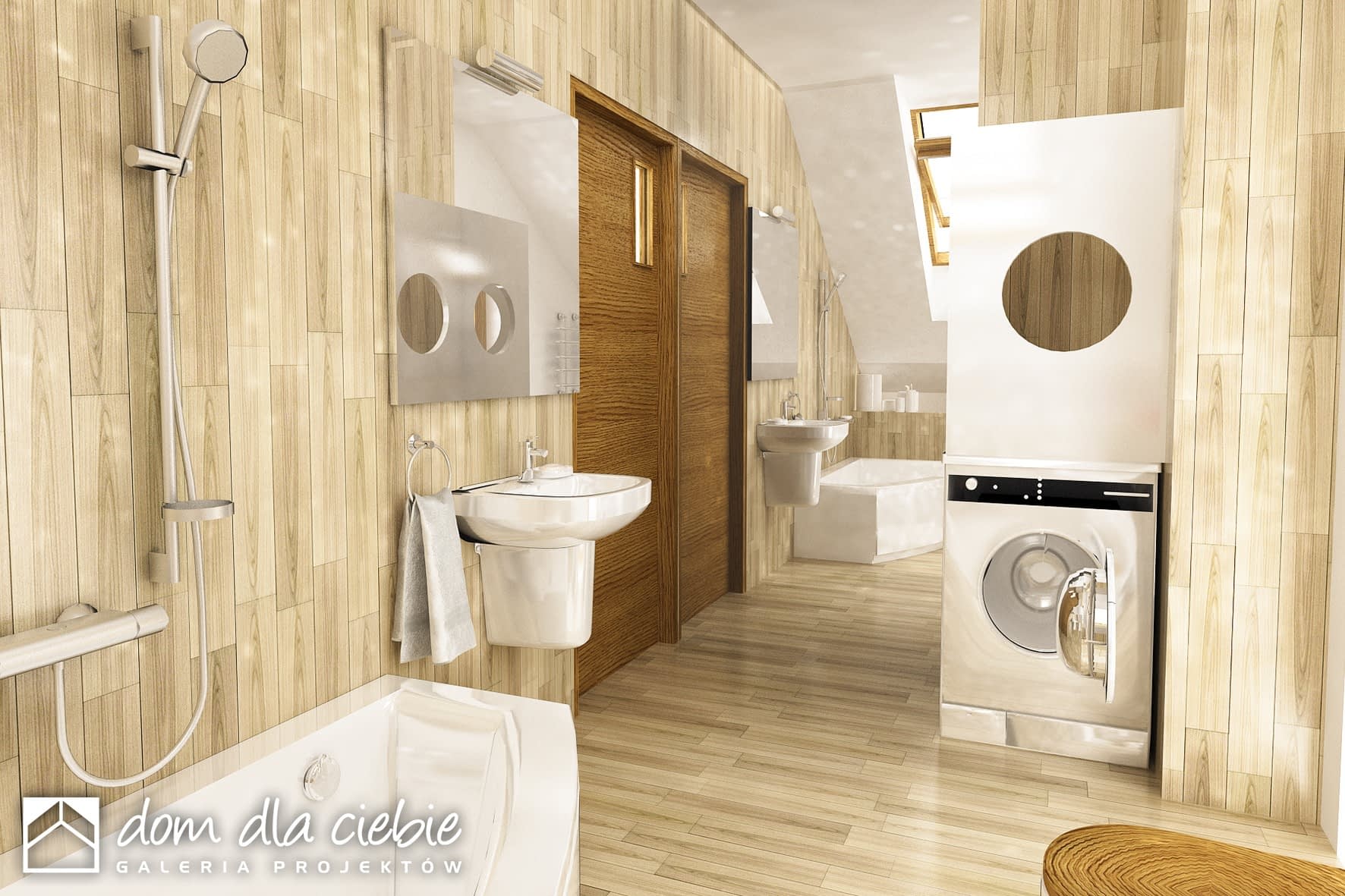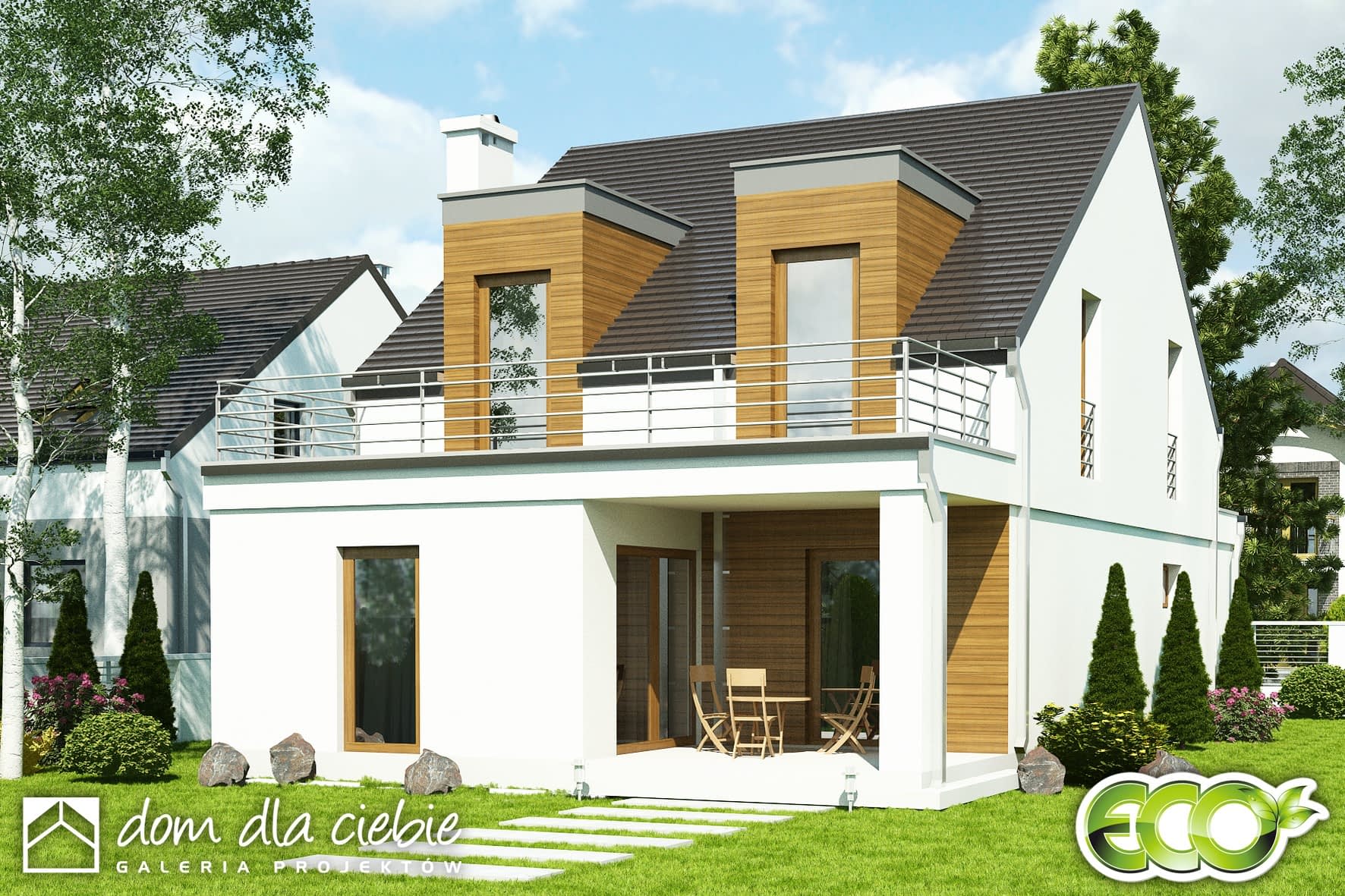 elewacje: tynk strukturalny, okładzina drewnopodobna