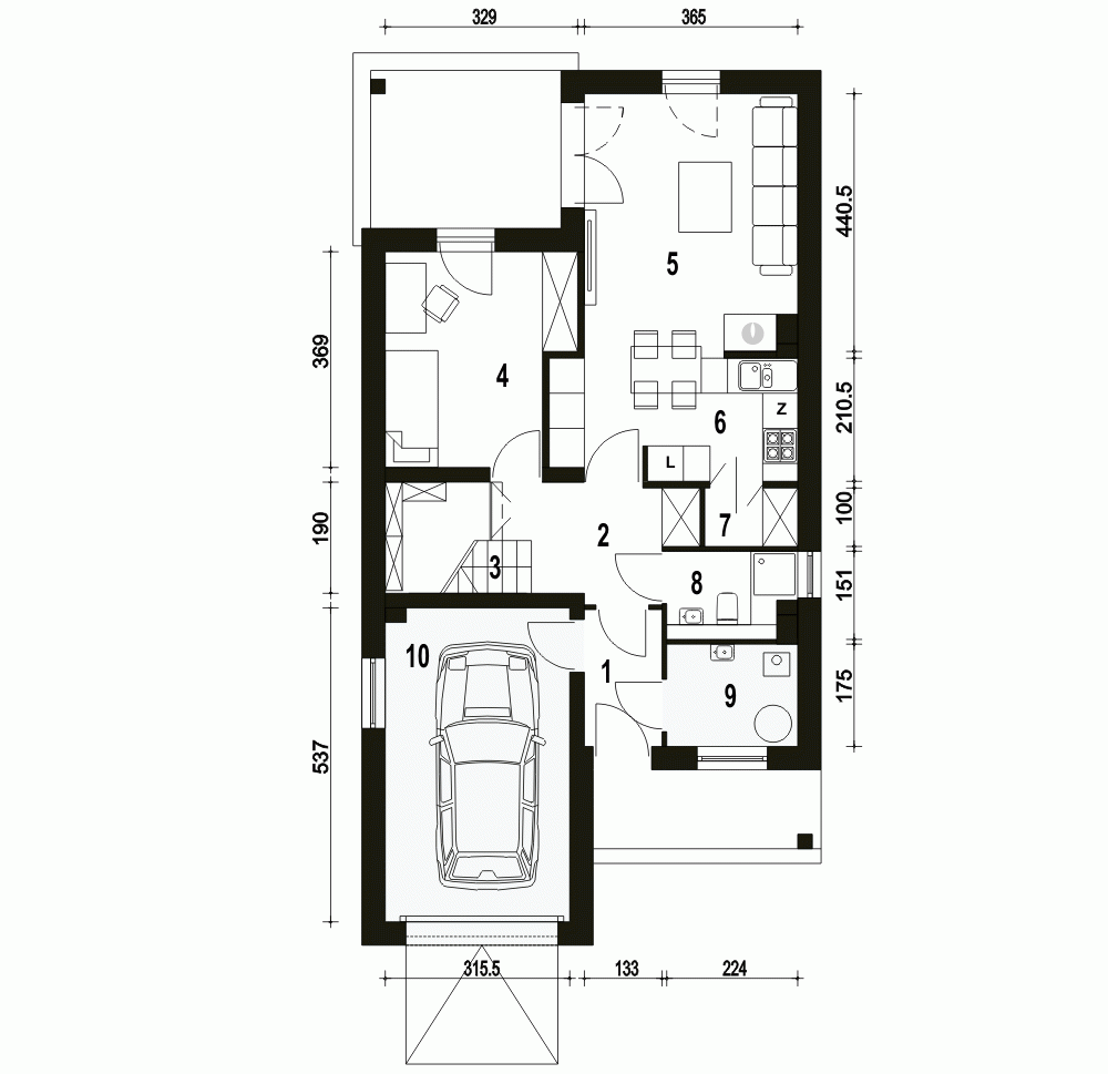 Makolągwa to propozycja niedużego domu dedykowanego 4-5 osobowej rodzinie o prostej bryle i optymalnej funkcji. Dom wyposażony został w częściowo wbudowany w garaż, dostępny jest poprzez wiatrołap z wejściem do kotłowni. dalej mamy kuchnię ze spiżarnią, jadalnię oraz salon z kominkiem. Mamy tu również dodatkowy pokój mogący spełniać funkcję gabinetu lub pokoju gościnnego oraz niewielką łazienkę z natryskiem. Pod schodami wygospodarowano miejsce na szafy. Na piętrze zaprojektowano 3 sypialnie, garderobę oraz łazienkę. Makolągwa to przykład domu dla osób praktycznych z ekonomicznym podejściem do inwestycji.