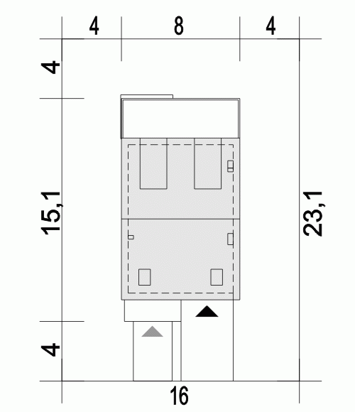 - Minimalne wymiary działki23.1 x 16m