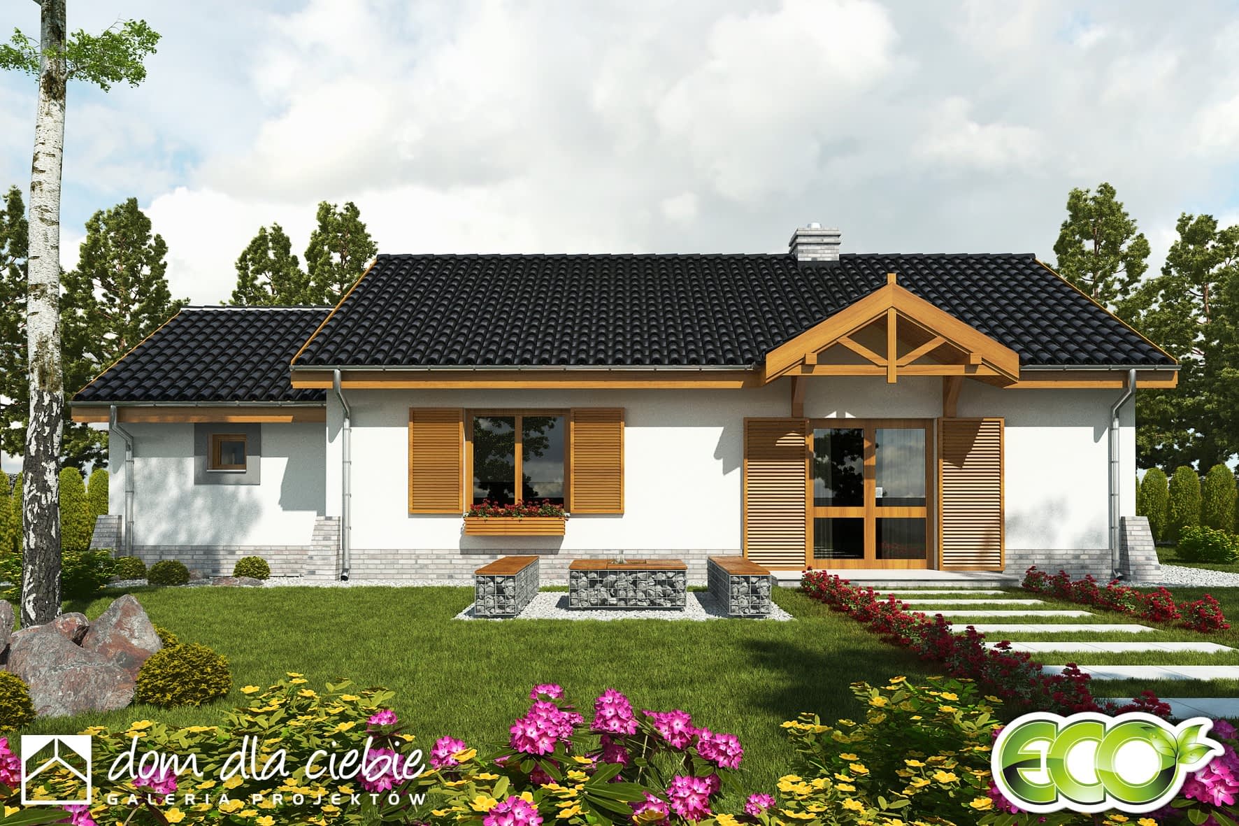 Niewielki, schludny dom mieszkalny, parterowy z przybudowanym garażem i poddaszem przeznaczonym na cele magazynowe. Pomimo niewielkiej powierzchni zachowuje podział na strefy dzienną (kuchnia, jadalnia i pok.dzienny) i nocną (2 sypialnie i łazienka). Dzięki ekonomicznej formie i funkcji MAŁGOSIA może spełniać funkcję domu rekreacyjnego... Sprawdź inne projekty domów - Zapraszamy !